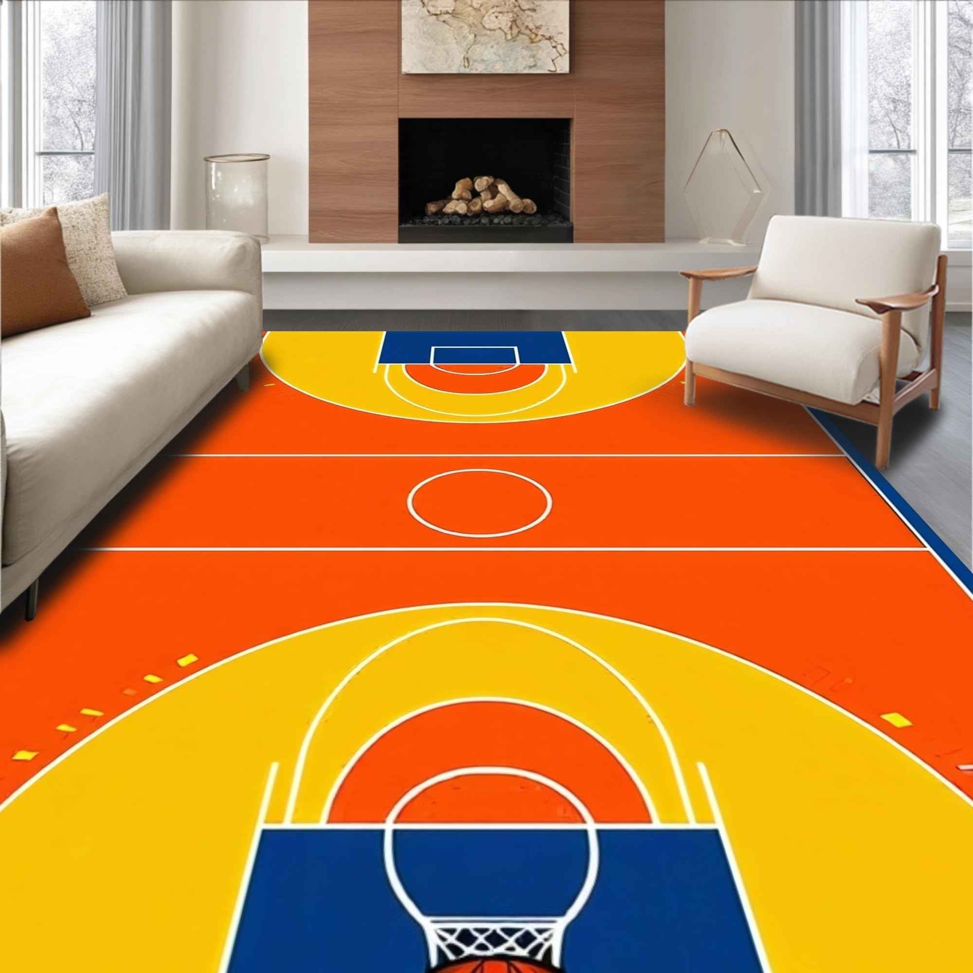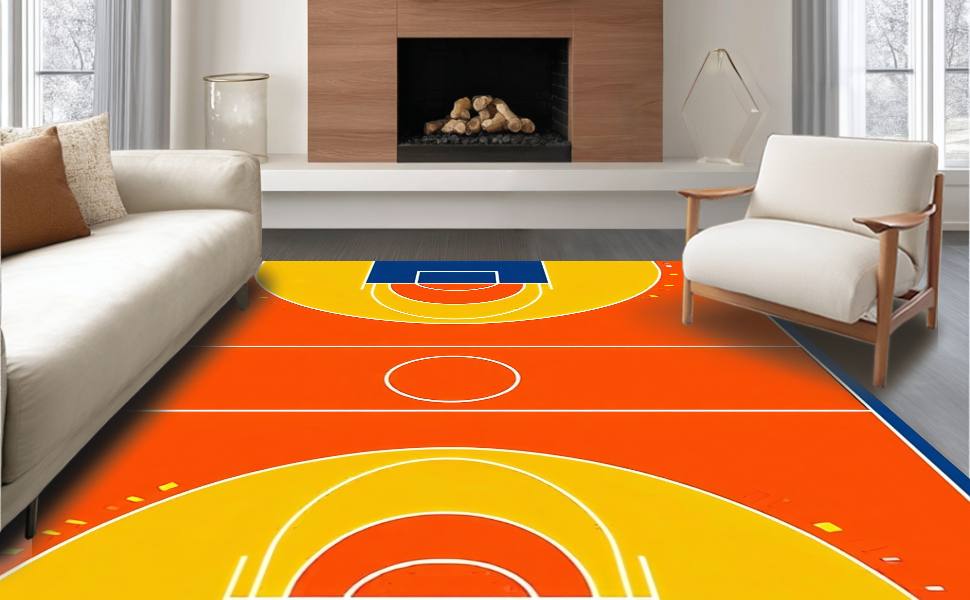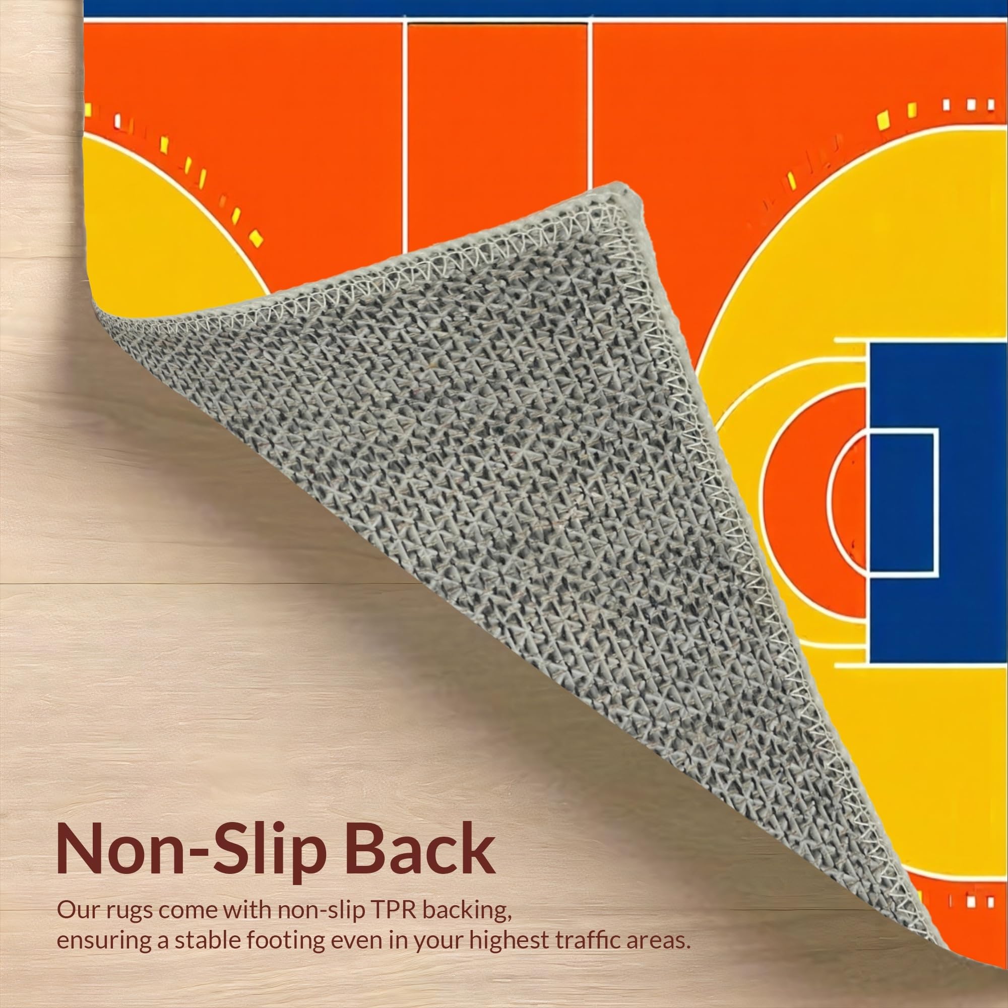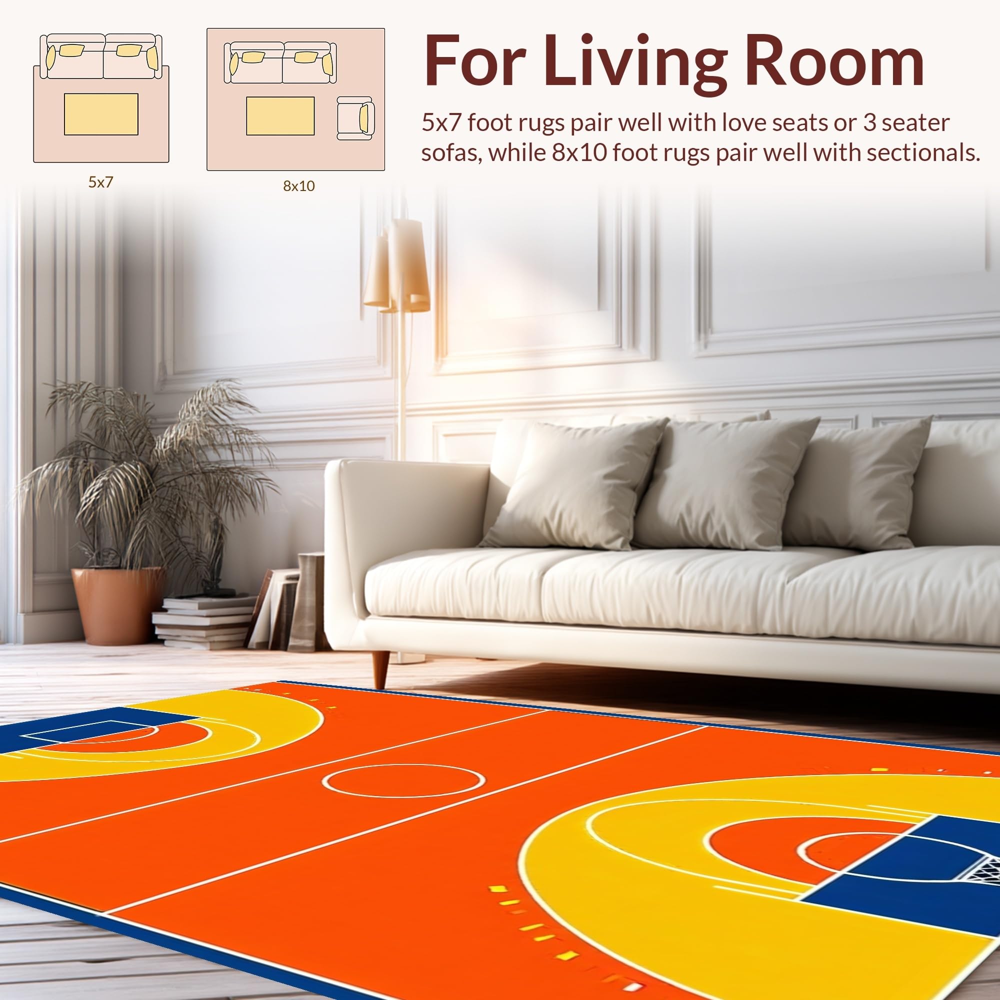 Ultra Soft Area Rug, Non Slip, Stain Resistant, Washable Area Rugs for Living Room, Bedroom, Energetic Sports-Themed Design(Orange) Overview: