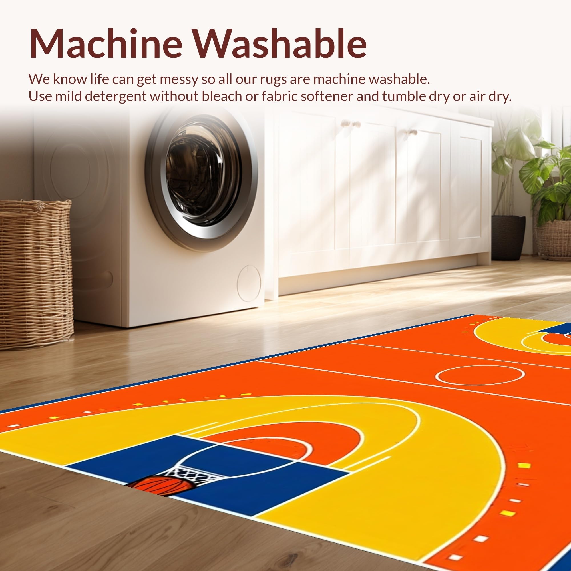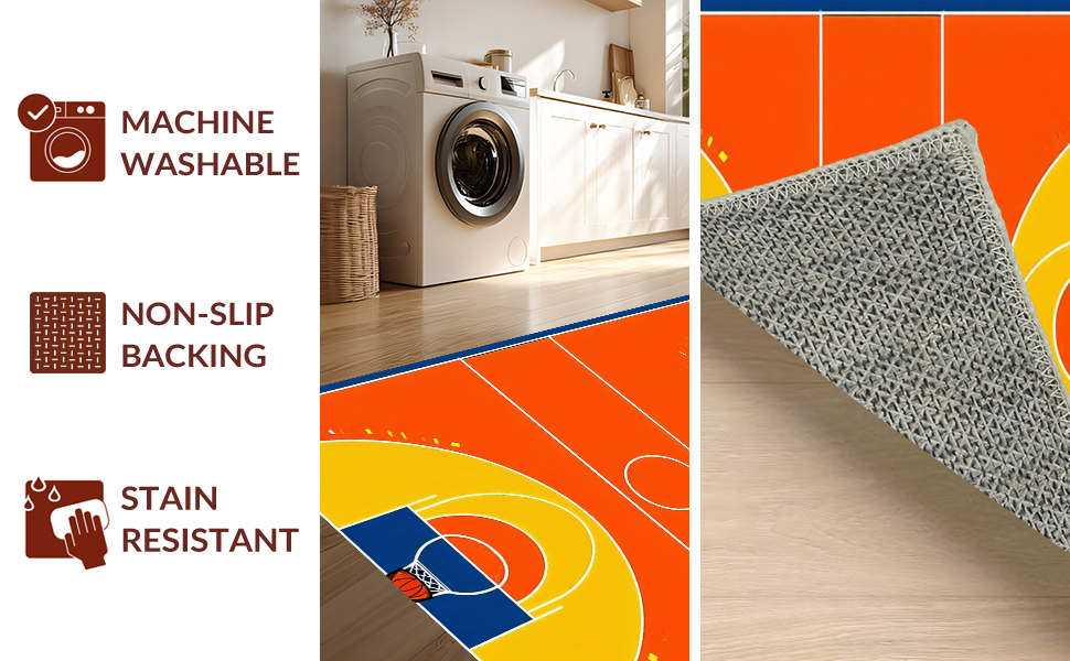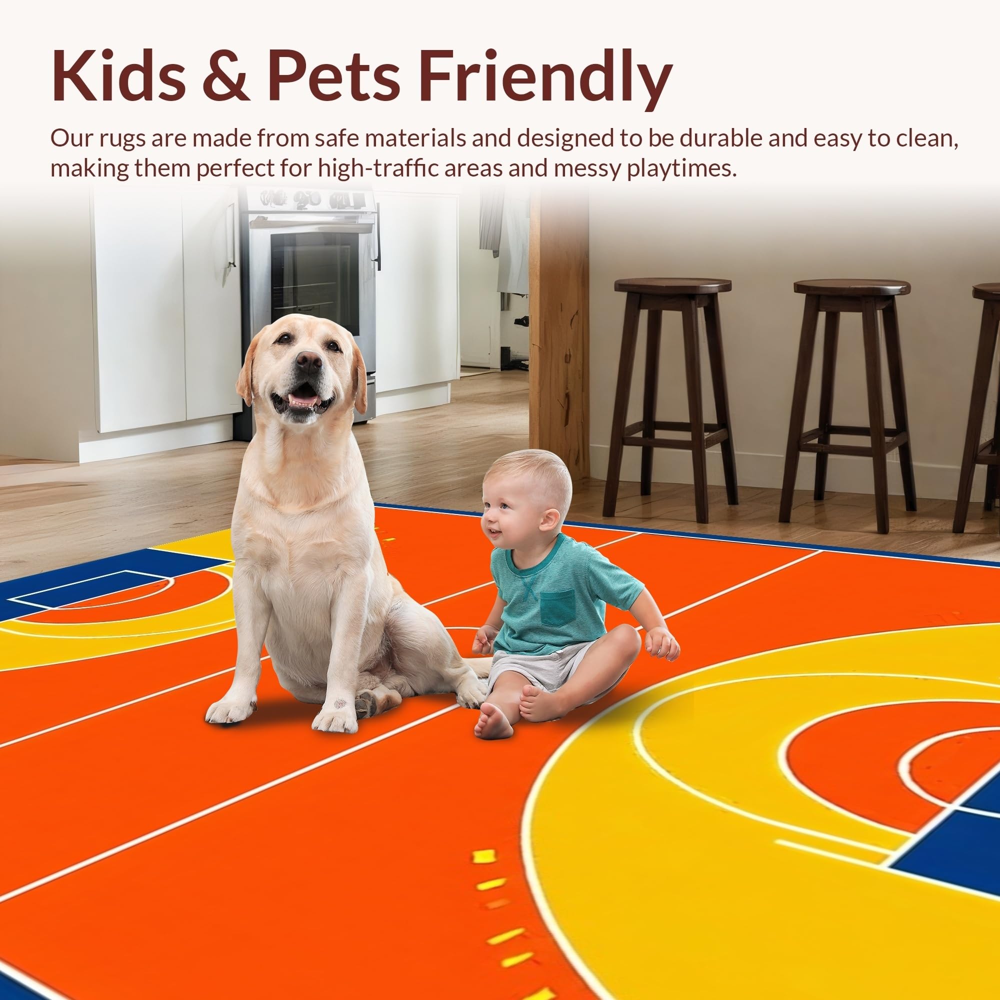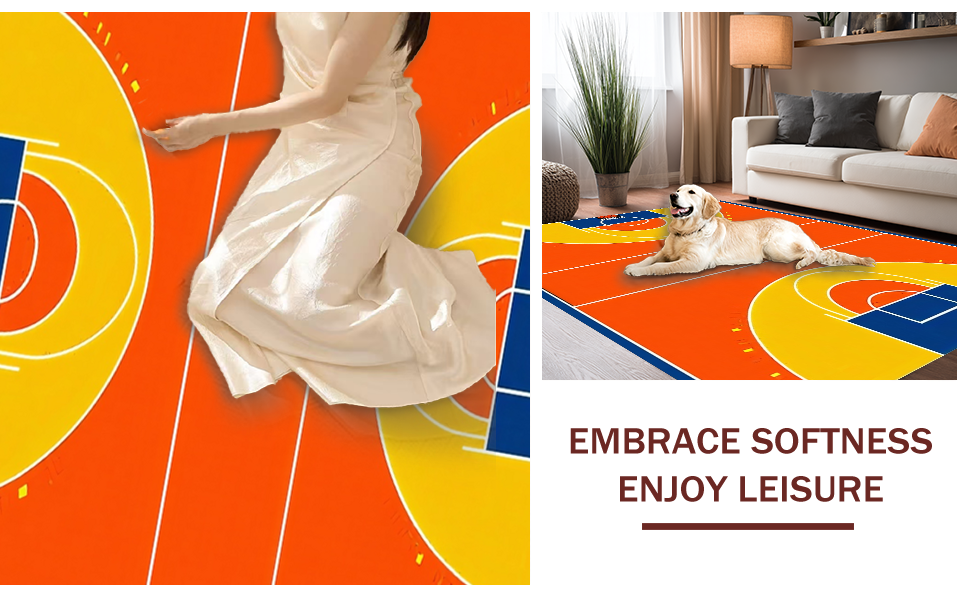 Ultra Soft Area Rug, Non Slip, Stain Resistant, Washable Area Rugs for Living Room, Bedroom, Energetic Sports-Themed Design(Orange) Overview: