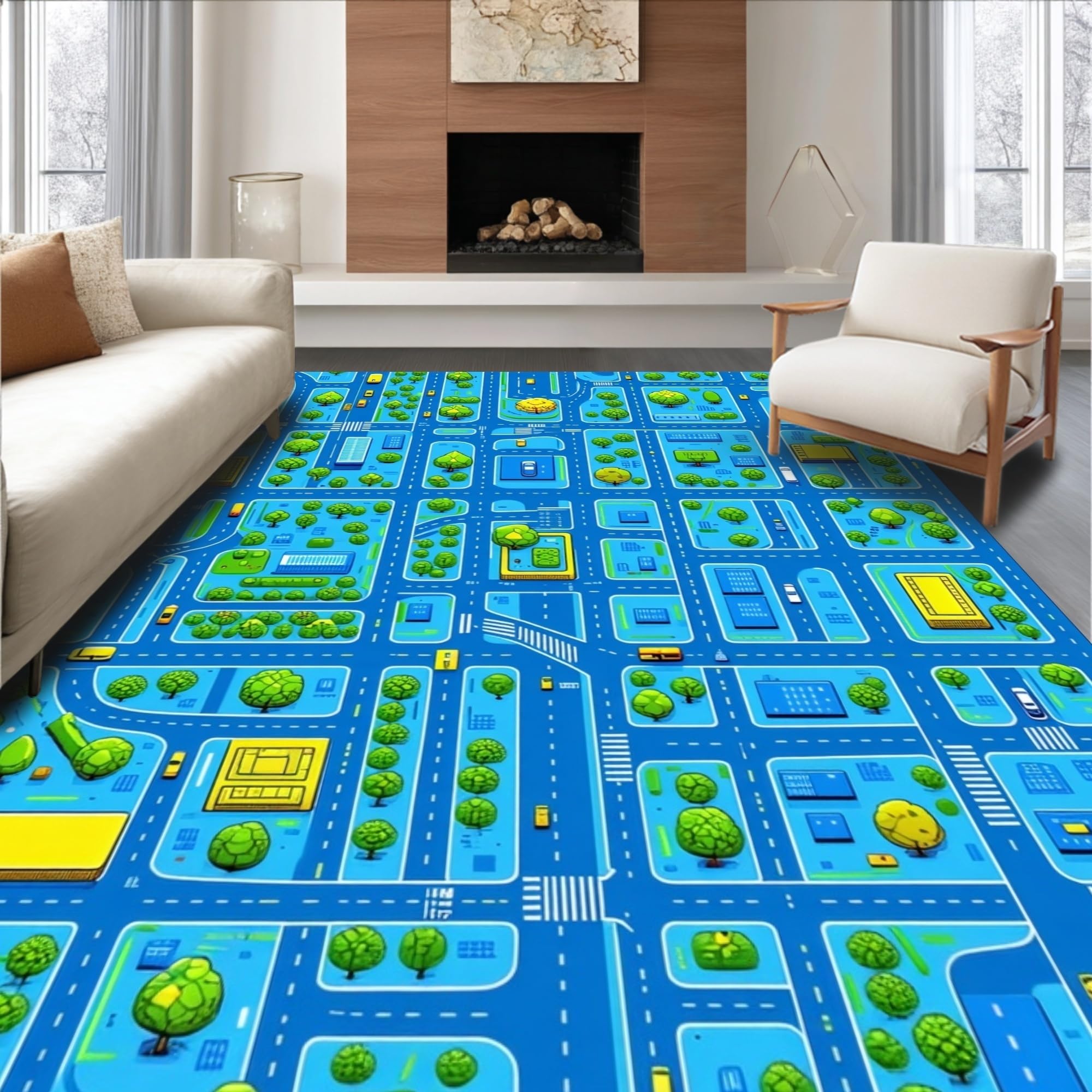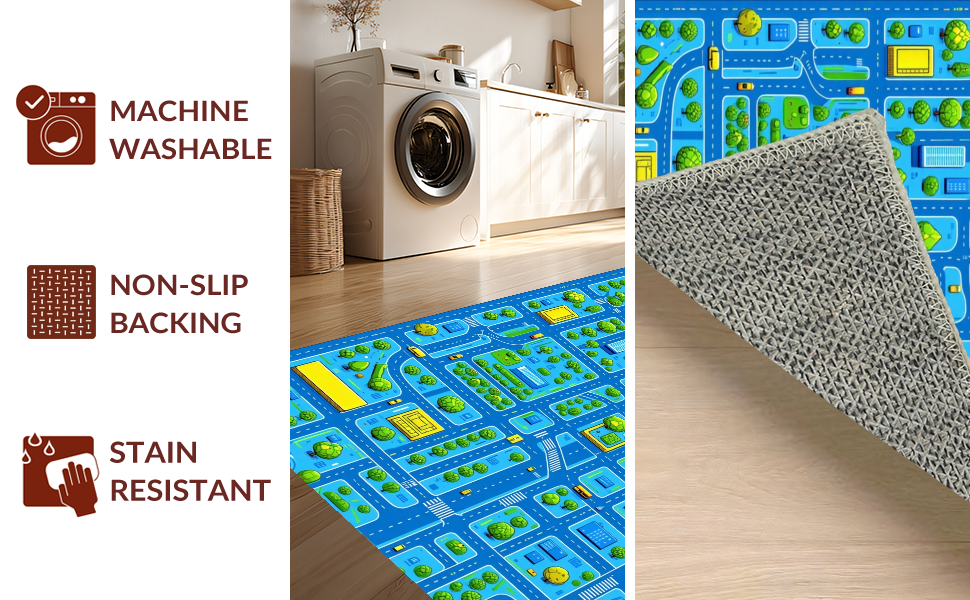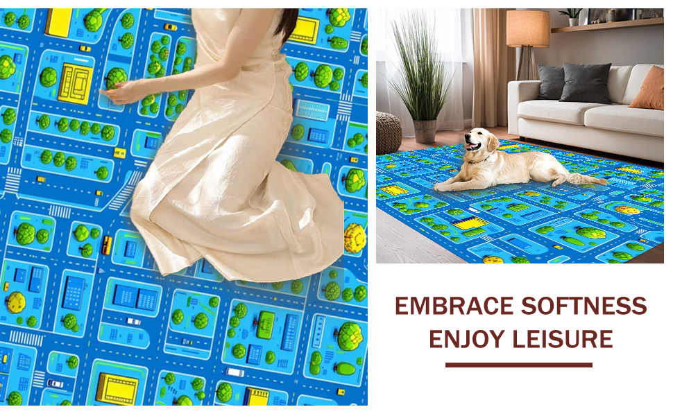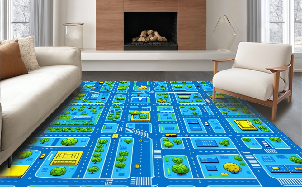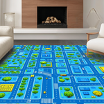 Ultra Soft Area Rug, Non Slip, Stain Resistant, Washable Area Rugs for Living Room, Bedroom, Engaging Geometric City Map(Blue) Overview: