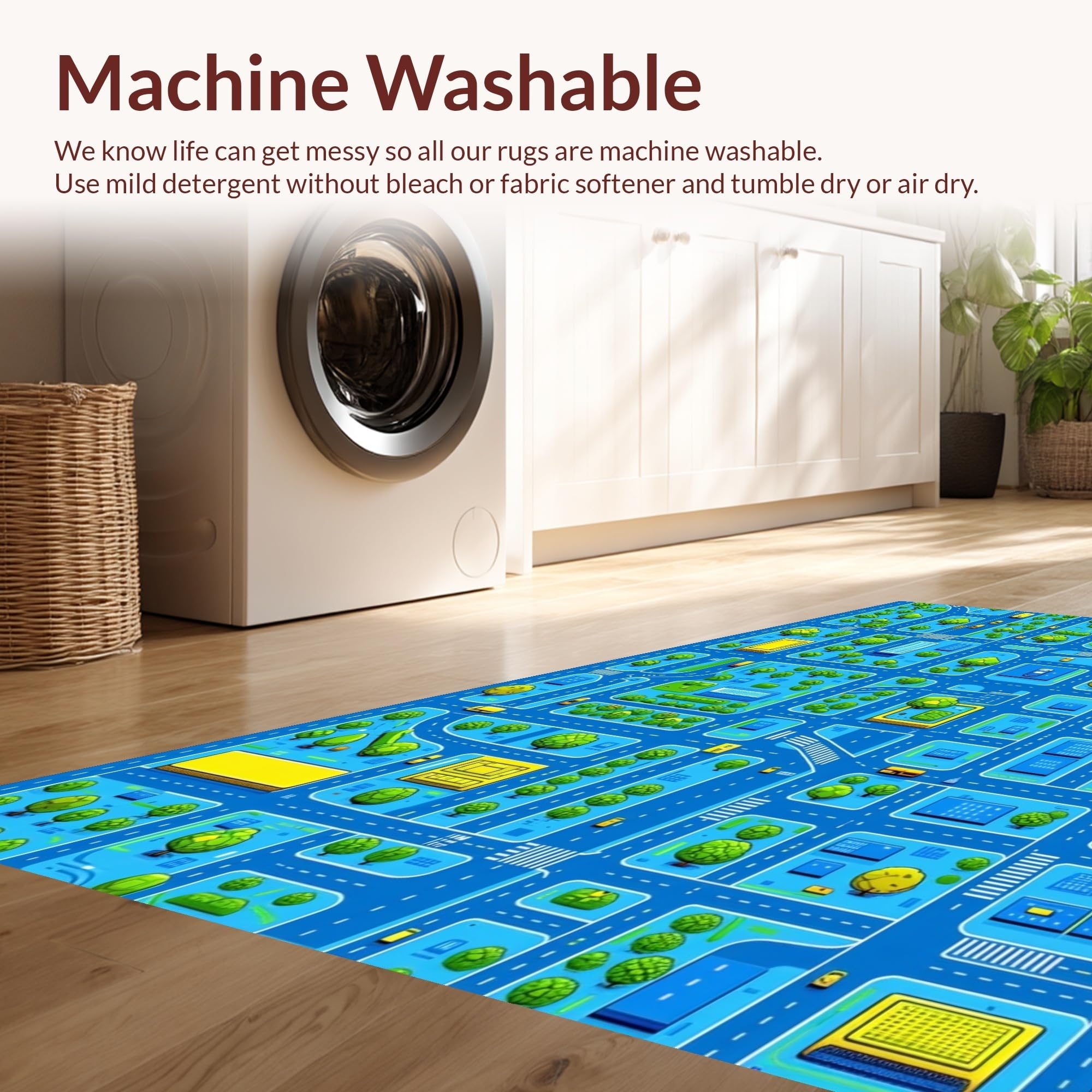 - Machine Washable: Our rugs can be easily thrown in the wash machine.
