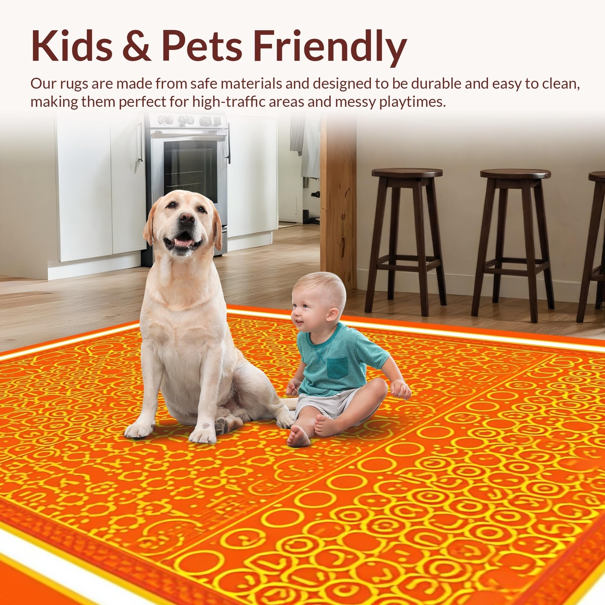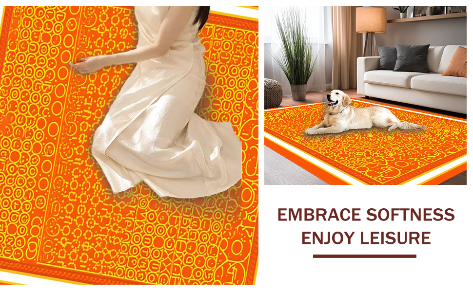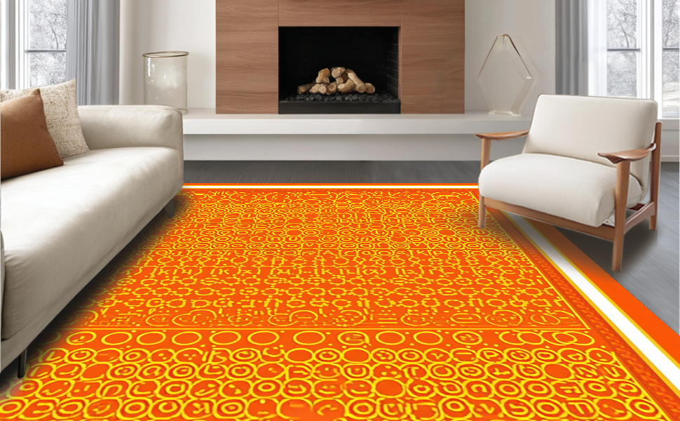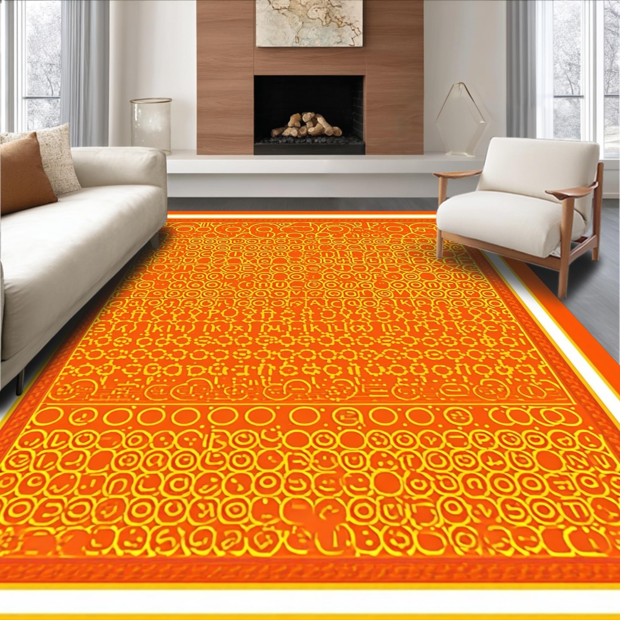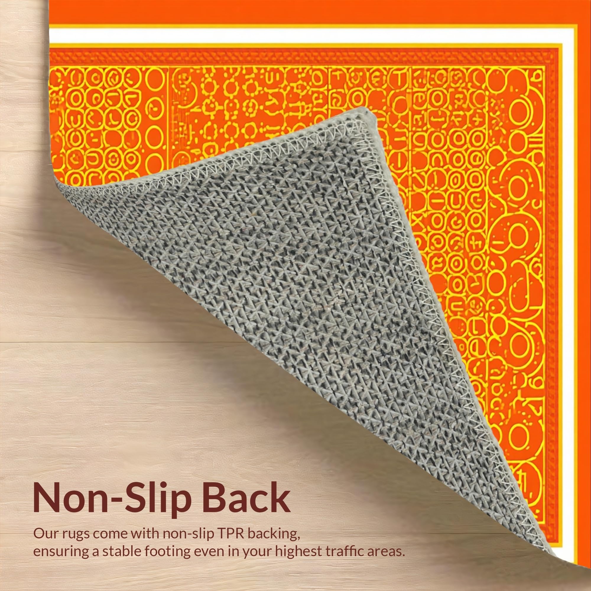 Ultra Soft Area Rug, Non Slip, Stain Resistant, Washable Area Rugs for Living Room, Bedroom, Engaging Round Alphabetical Delight(Orange) Overview: