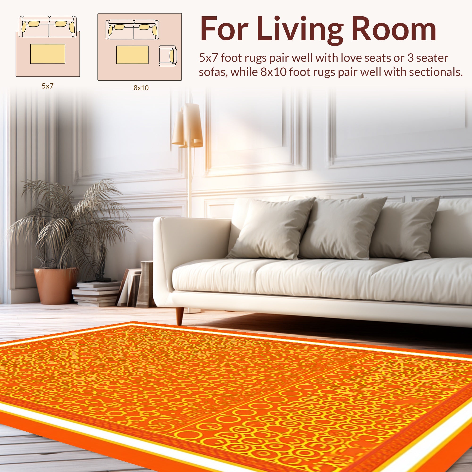 Flatwoven High Traffic Area Rug, Engaging Round Alphabetical Delight, Non Slip, Stain Resistant, Washable Area Rugs for Living Room, Bedroom (Orange) Overview: