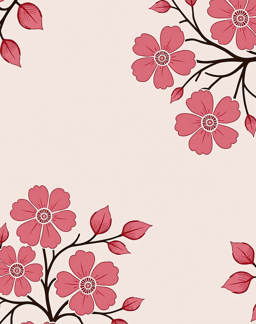 English Garden Chinoiserie with Hand Painted Cherry Blossom Sprays(Pink)