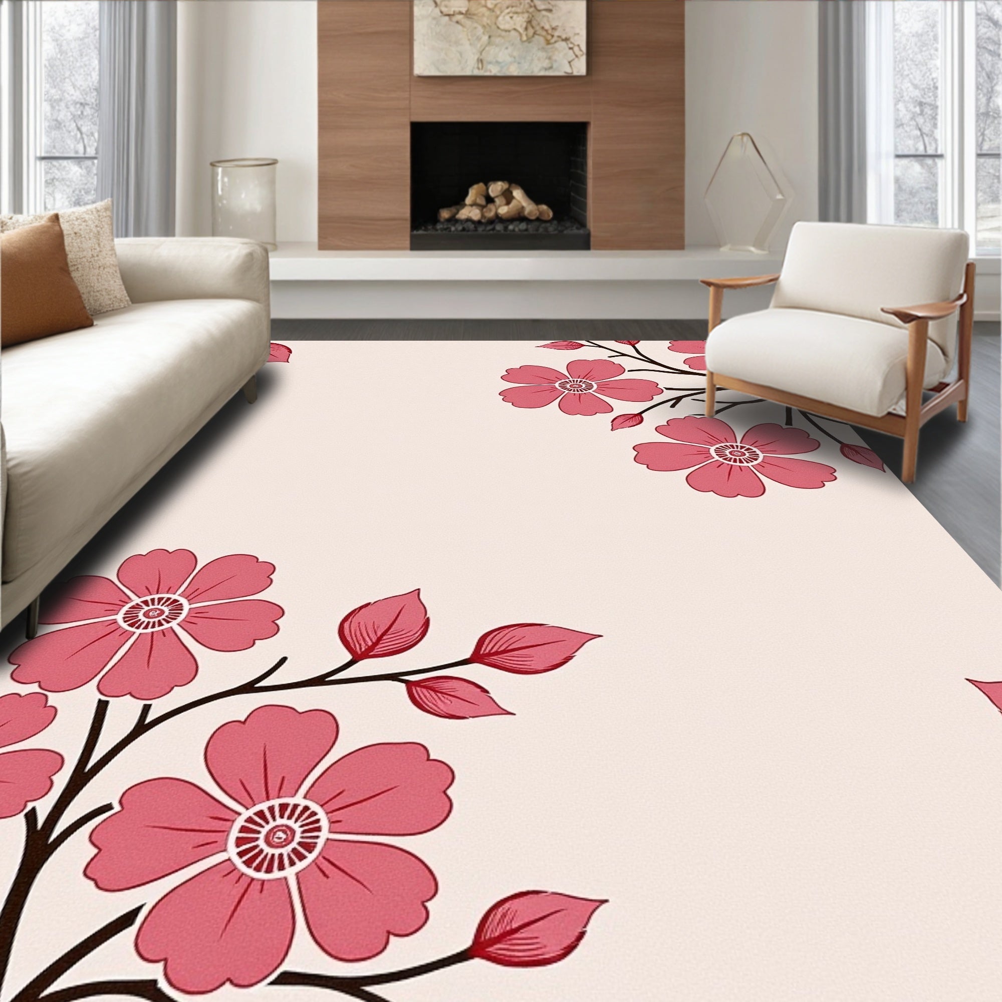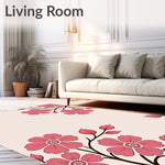 Ultra Soft Area Rug, Non Slip, Stain Resistant, Washable Area Rugs for Living Room, Bedroom, English Garden Chinoiserie with Hand Painted Cherry Blossom Sprays(Pink) Overview: