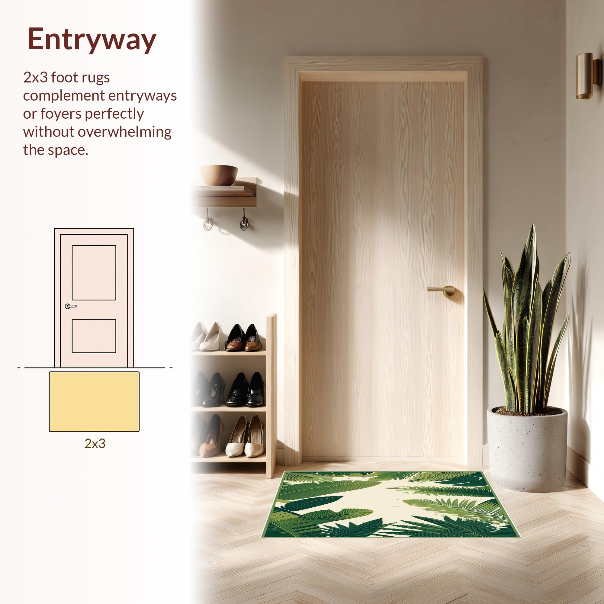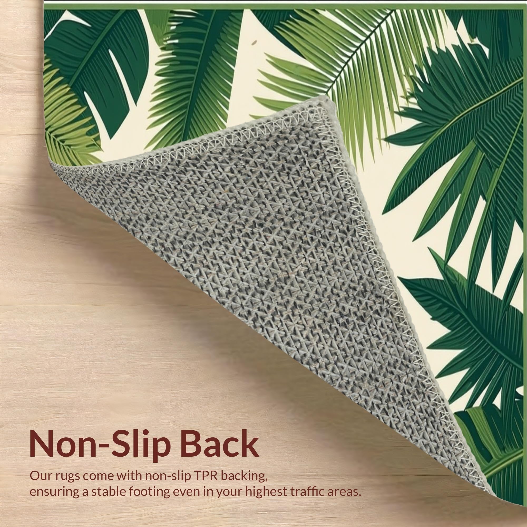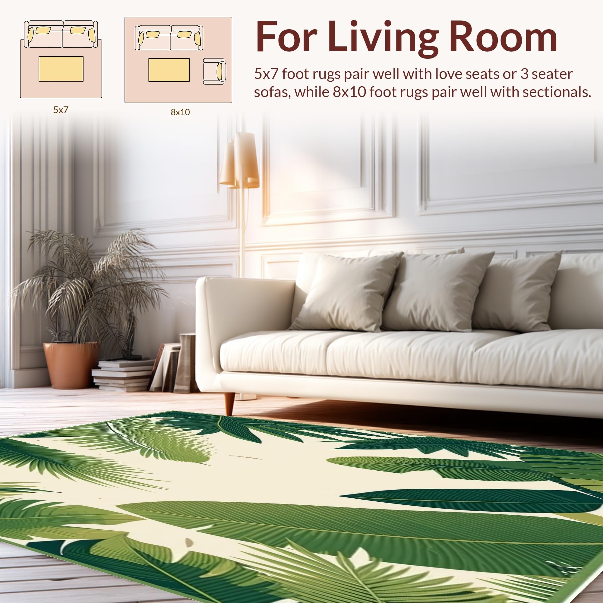 Ultra Soft Area Rug, Non Slip, Stain Resistant, Washable Area Rugs for Living Room, Bedroom, Entryway Area Tropical Leaves Beige Small(Green) Overview:
