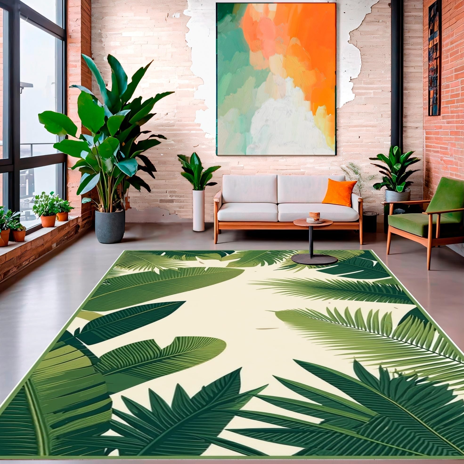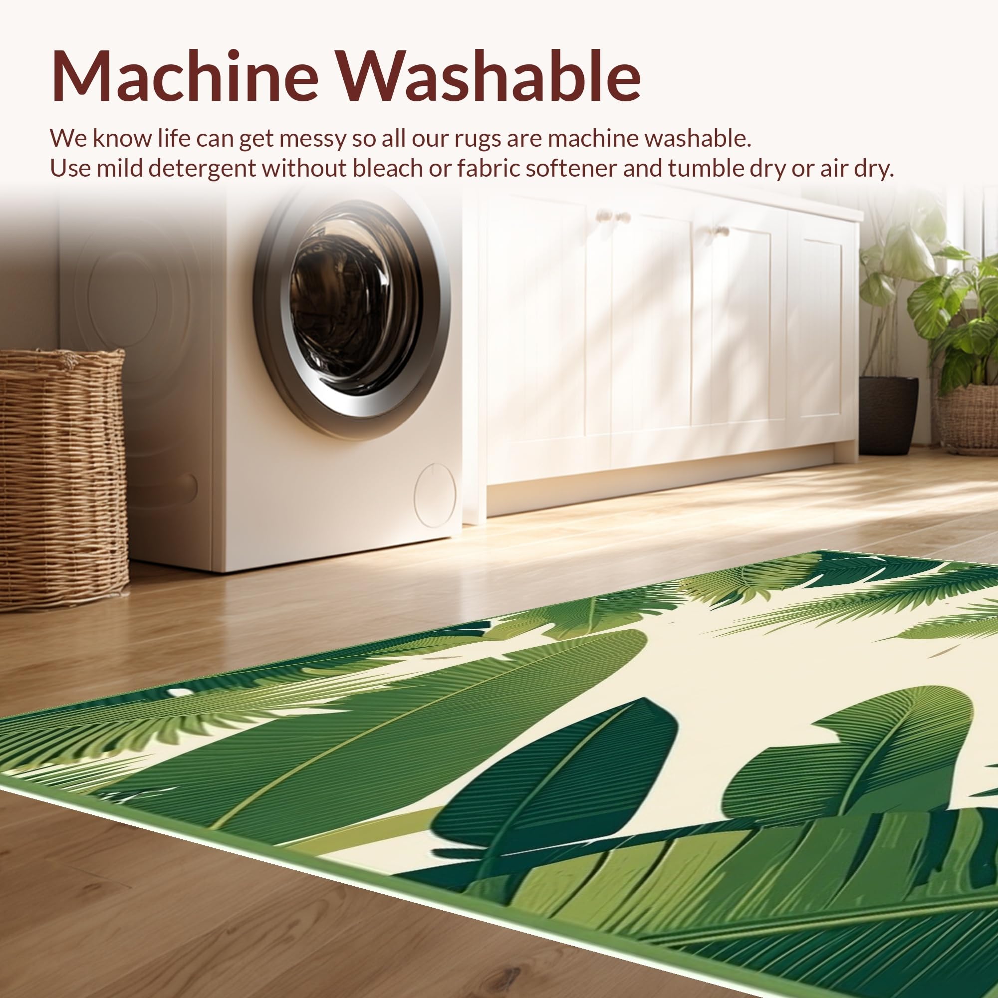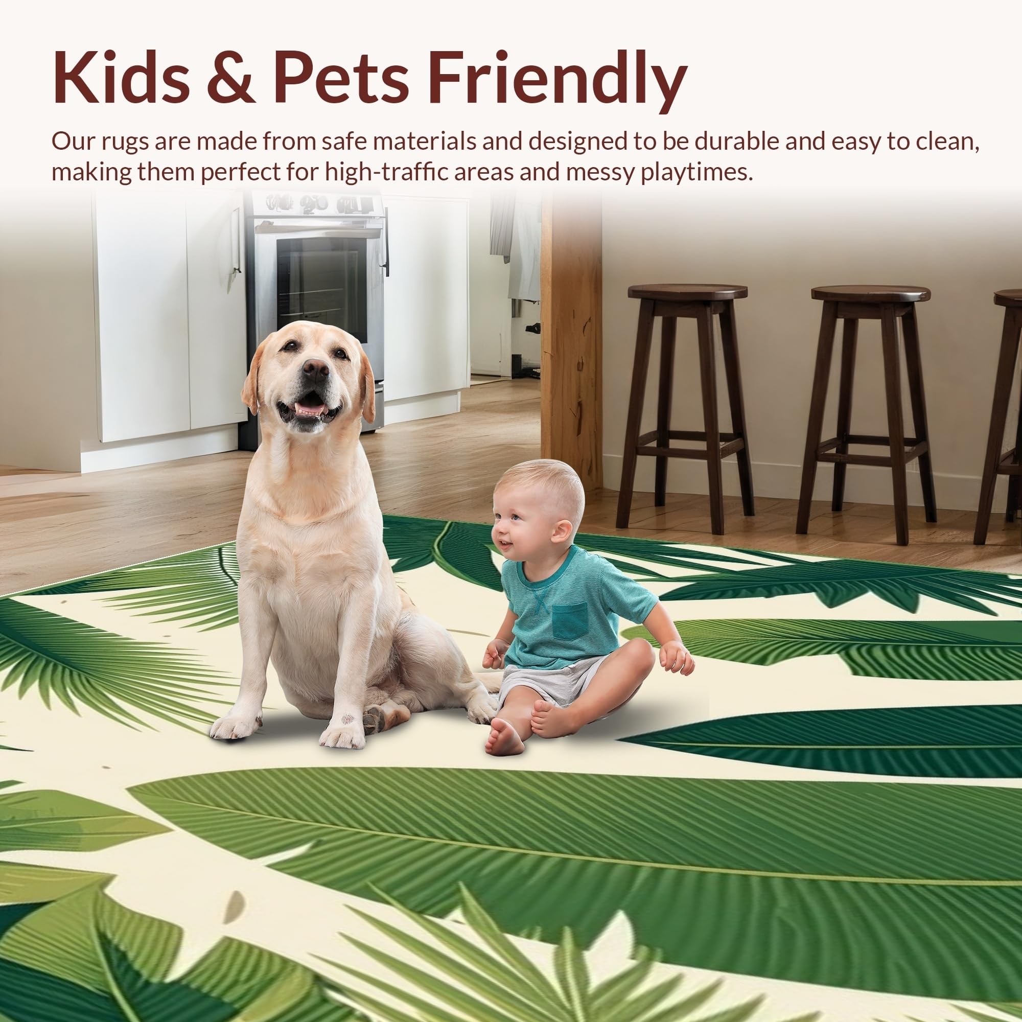 Ultra Soft Area Rug, Non Slip, Stain Resistant, Washable Area Rugs for Living Room, Bedroom, Entryway Area Tropical Leaves Beige Small(Green) Overview: