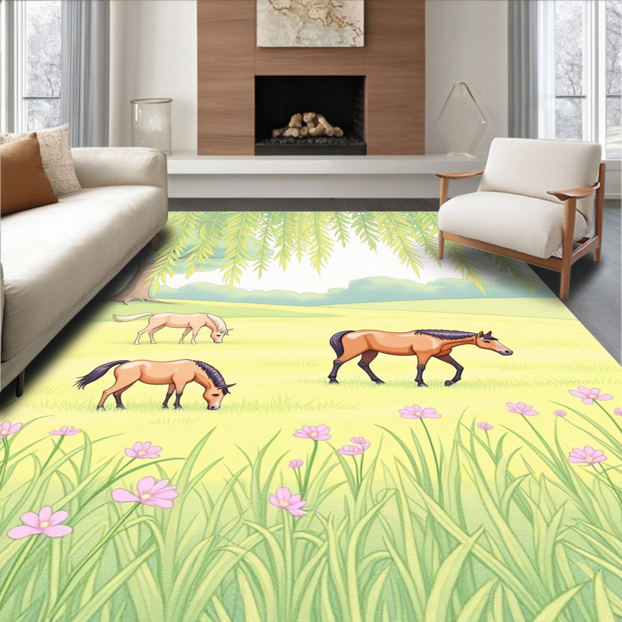 Ultra Soft Area Rug, Non Slip, Stain Resistant, Washable Area Rugs for Living Room, Bedroom, Equestrian Meadow Decorative Accent(Green) Overview: