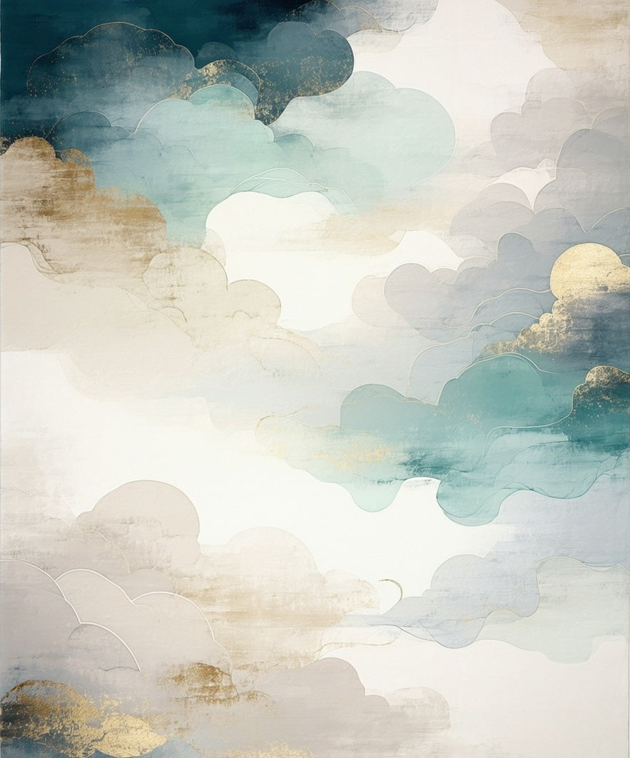 Ethereal Aura Area Beige & Blue Cloud Inspired Design(White)