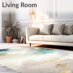 Ultra Soft Area Rug, Non Slip, Stain Resistant, Washable Area Rugs for Living Room, Bedroom, Ethereal Aura Area Beige & Blue Cloud Inspired Design(White) Overview: