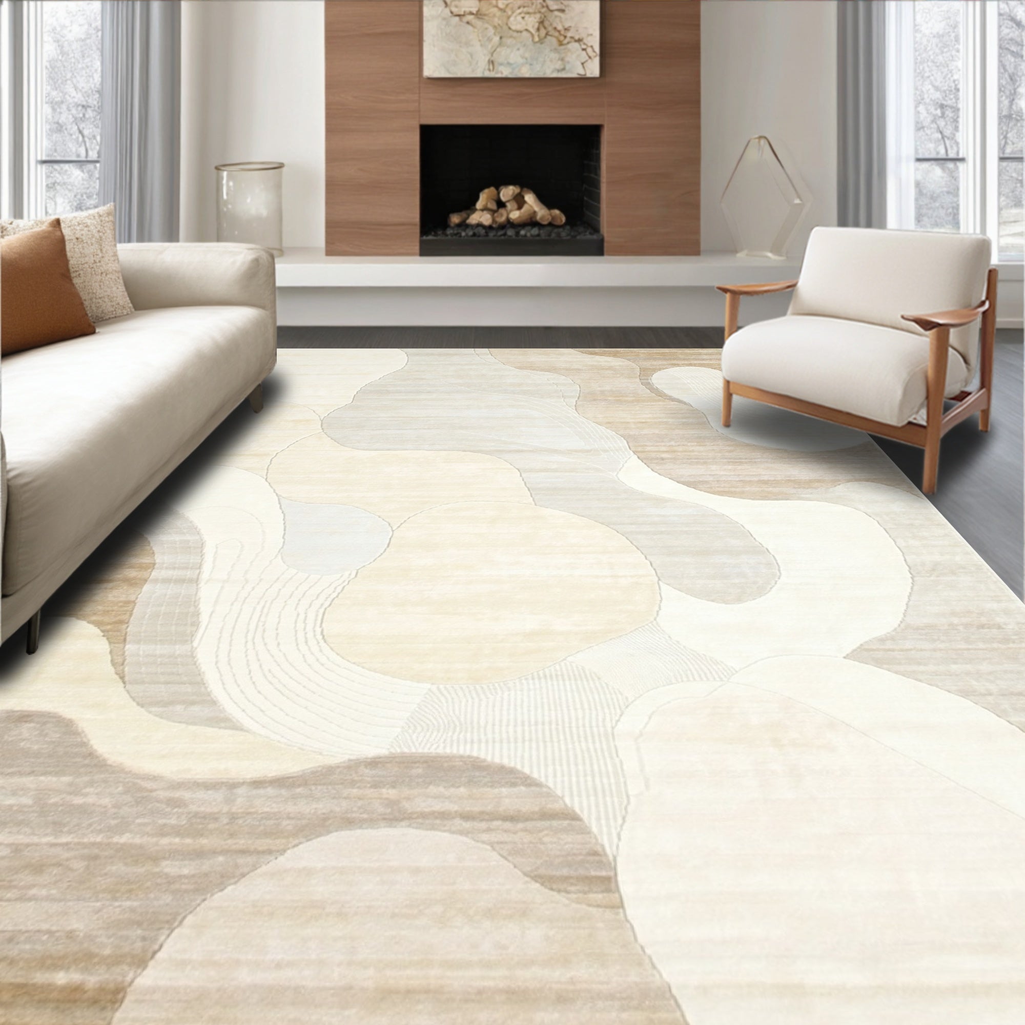 Ethereal Beige Area Abstract Swirls for Home Decor(Beige)