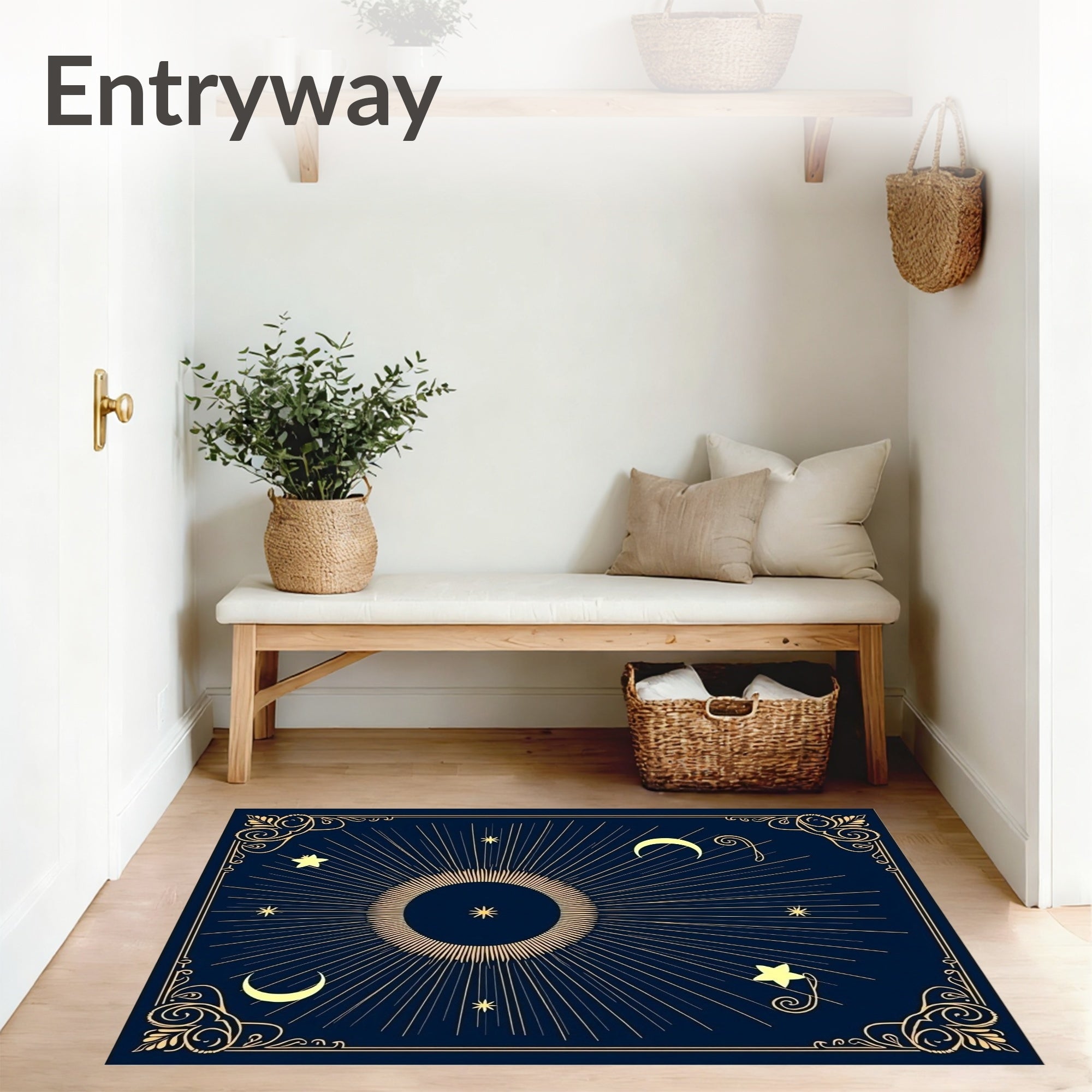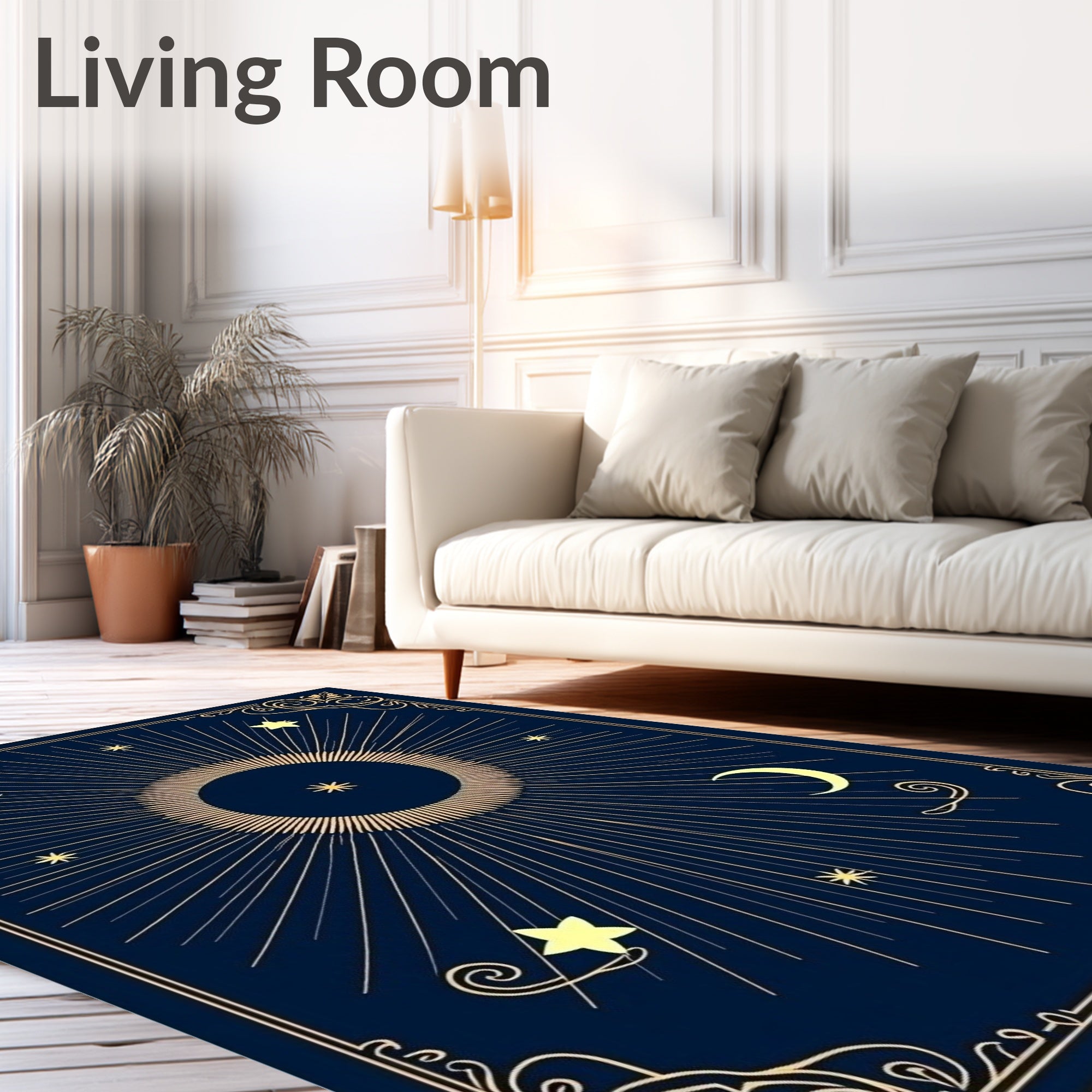 Ultra Soft Area Rug, Non Slip, Stain Resistant, Washable Area Rugs for Living Room, Bedroom, Ethereal Heavenly Bodies Spiritual Radiant Dreamscape(Blue) Overview: