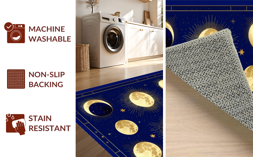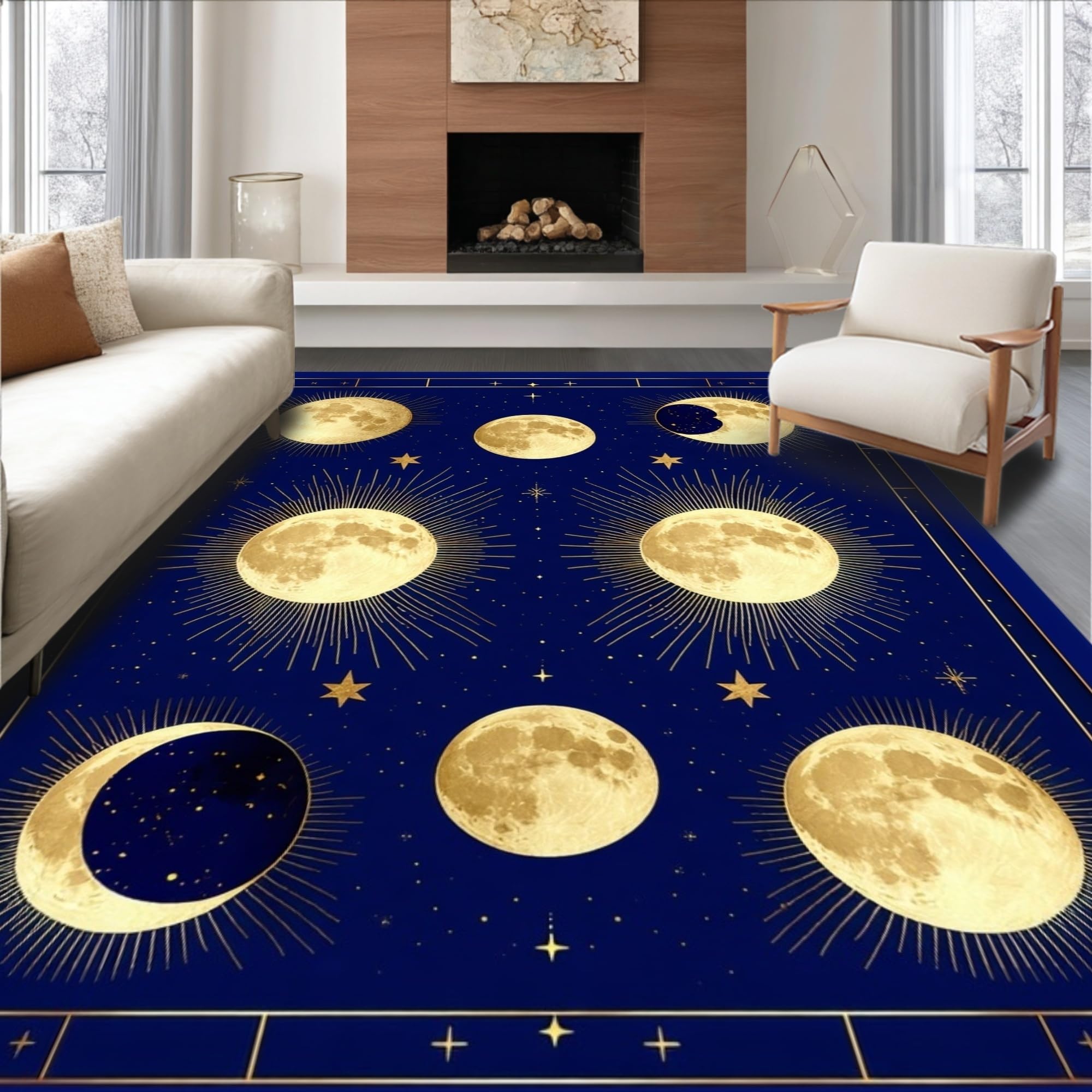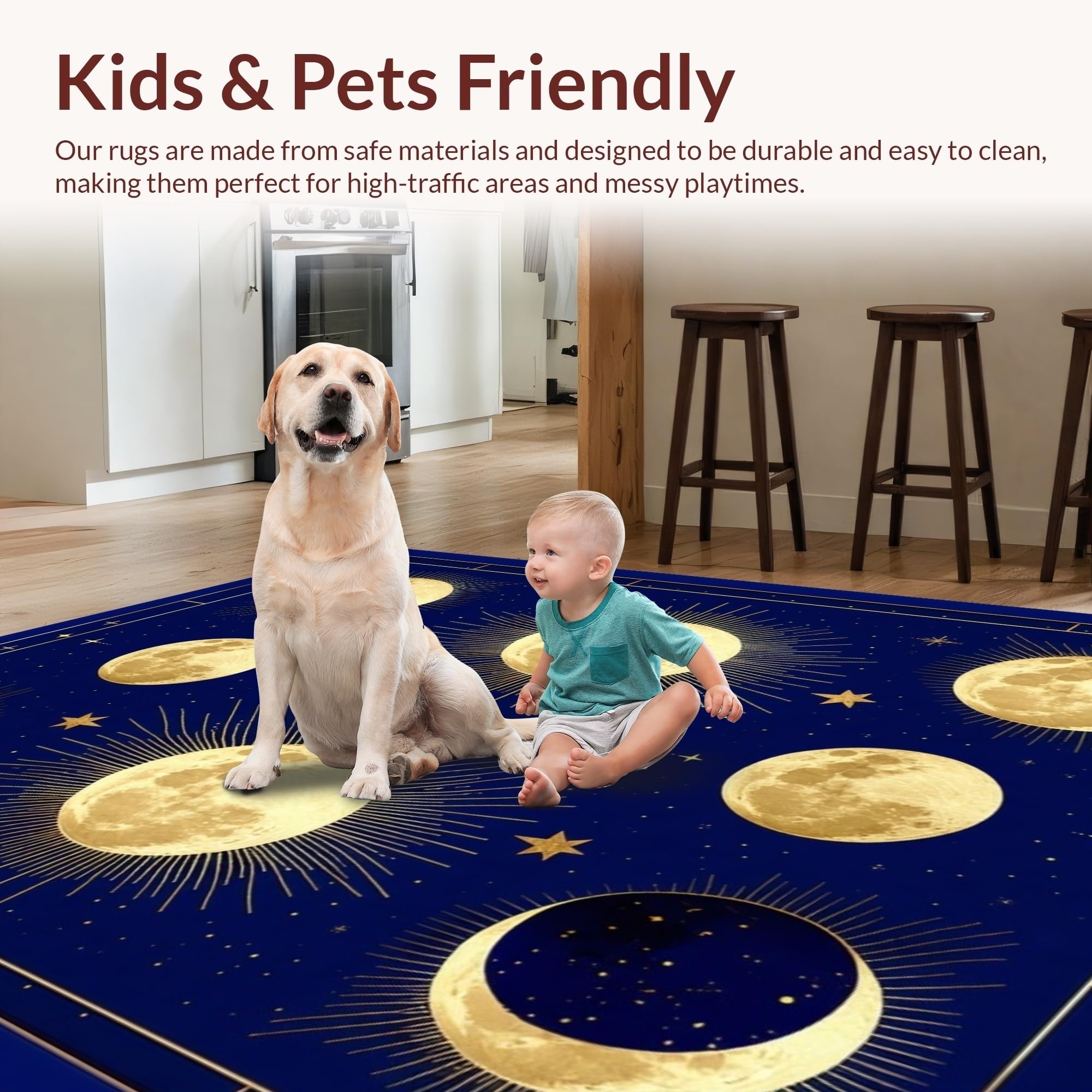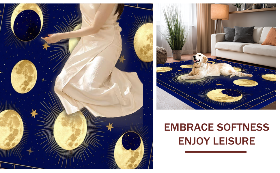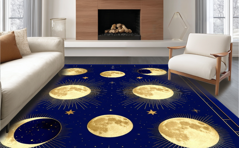 Ultra Soft Area Rug, Non Slip, Stain Resistant, Washable Area Rugs for Living Room, Bedroom, Ethereal Moonlit Patterned Elegance(Blue) Overview: