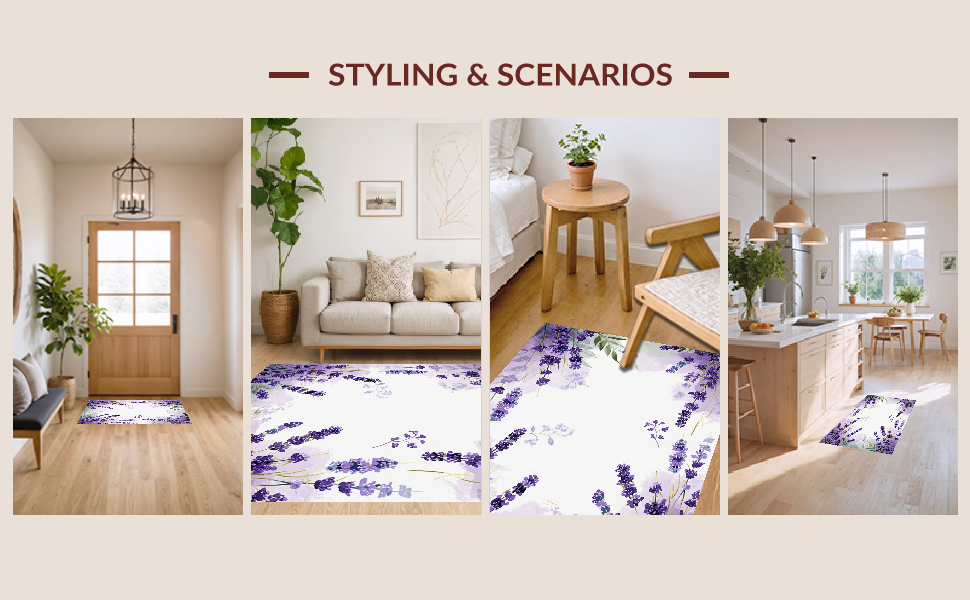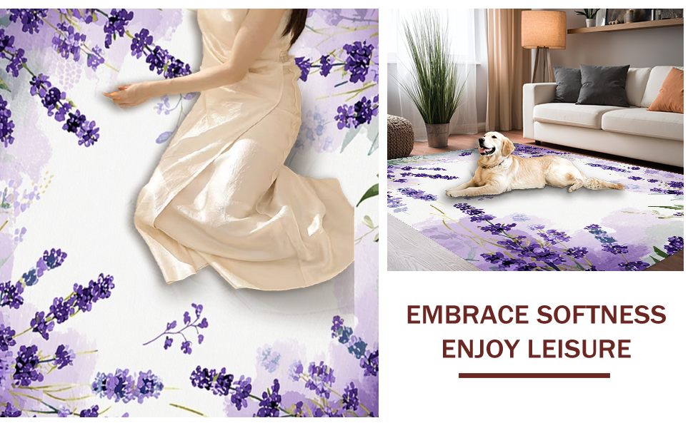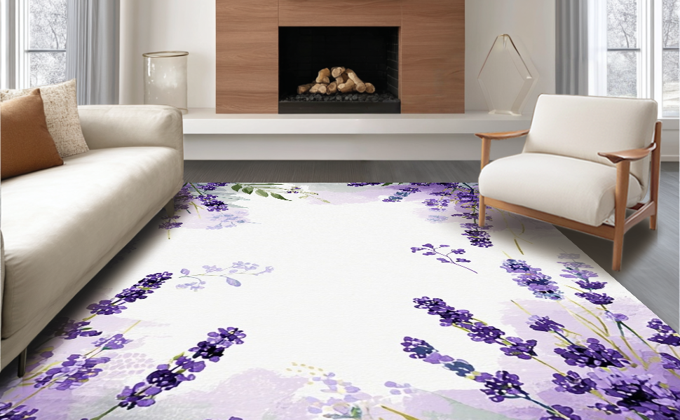 Ultra Soft Area Rug, Non Slip, Stain Resistant, Washable Area Rugs for Living Room, Bedroom, Ethereal Pastel Floral Arrangement(Purple) Overview:
