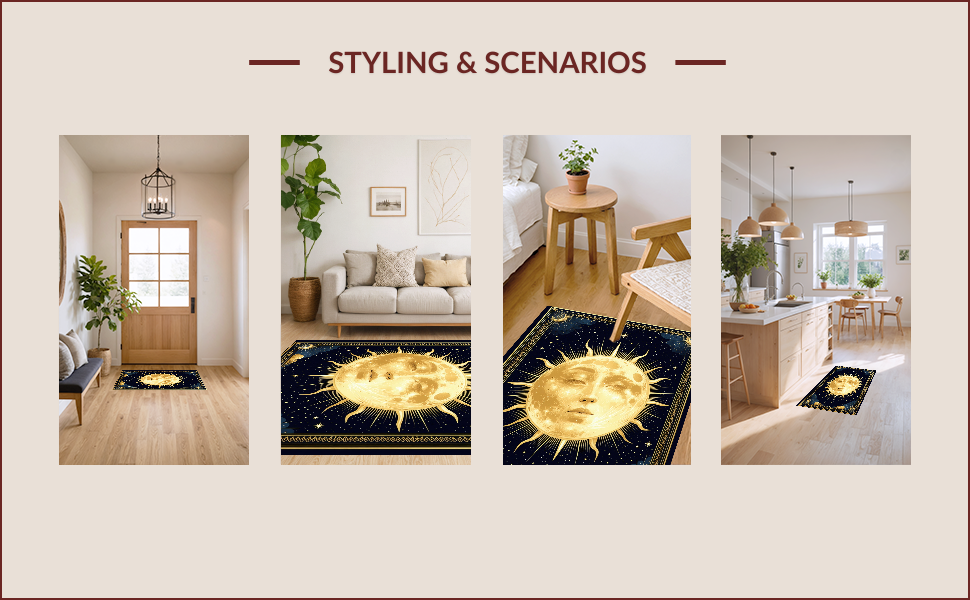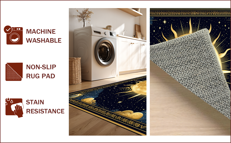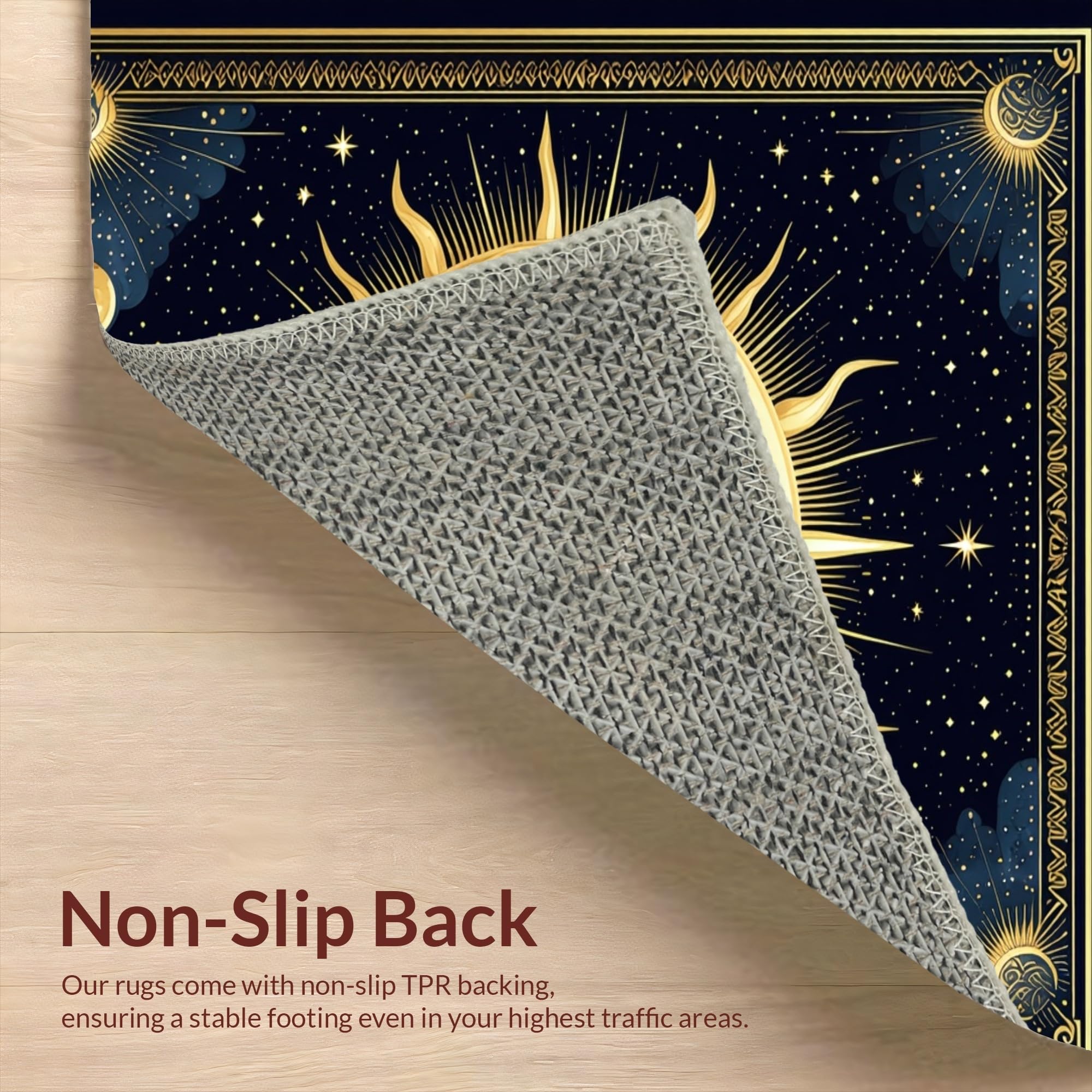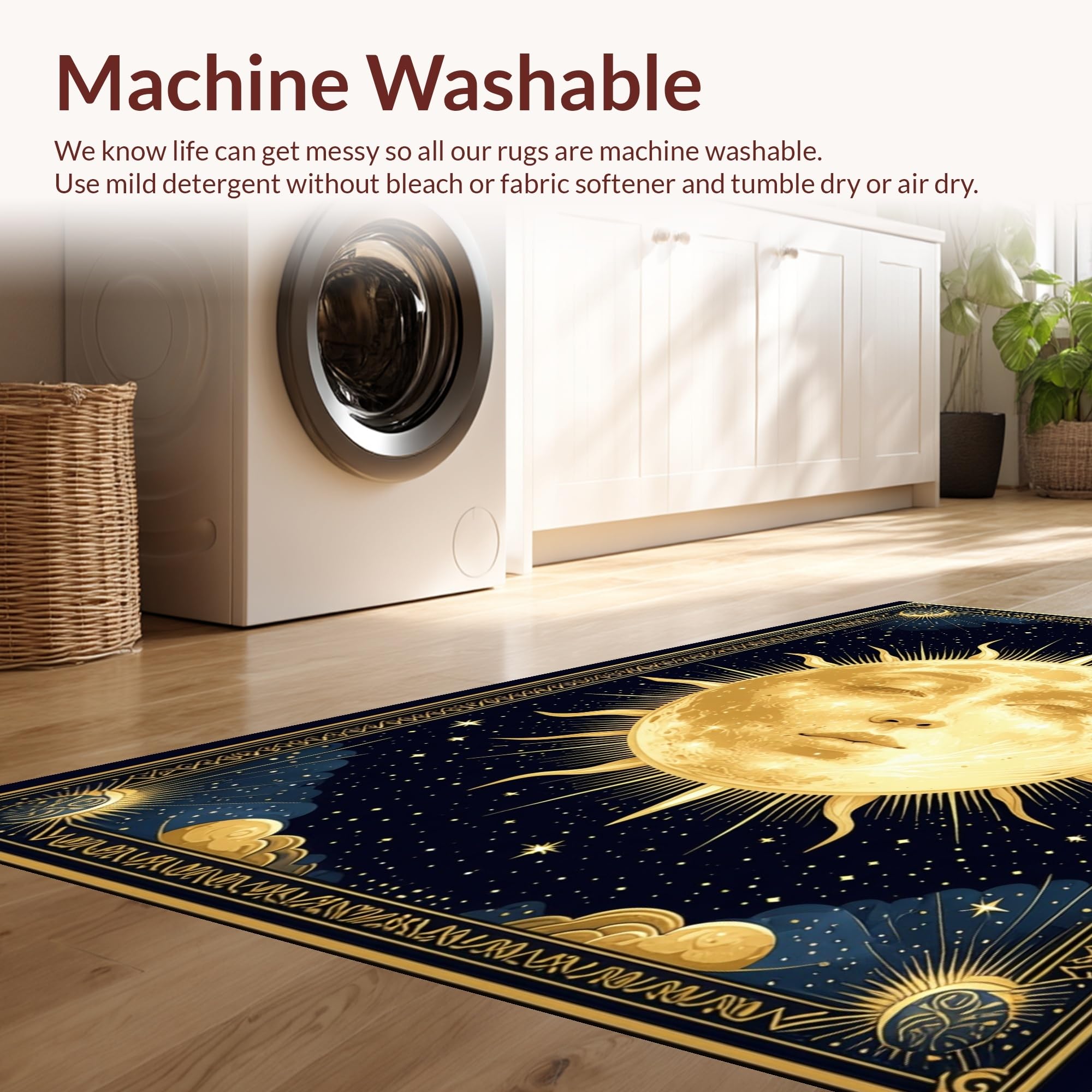 Ultra Soft Area Rug, Non Slip, Stain Resistant, Washable Area Rugs for Living Room, Bedroom, Ethereal Solar and Lunar Fusion(Gold) Overview: