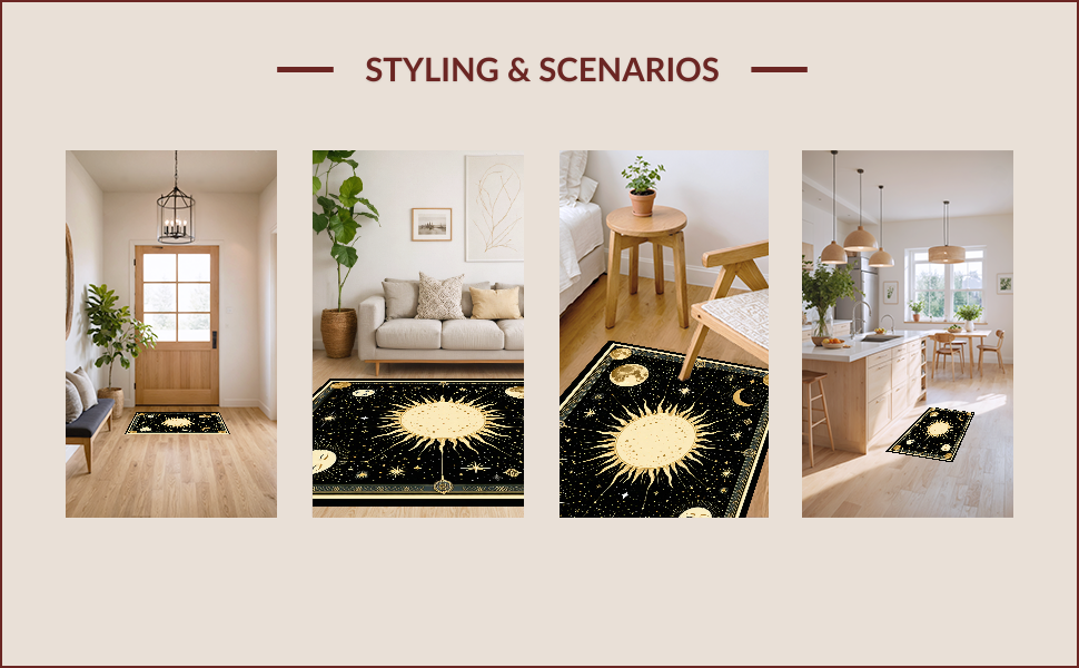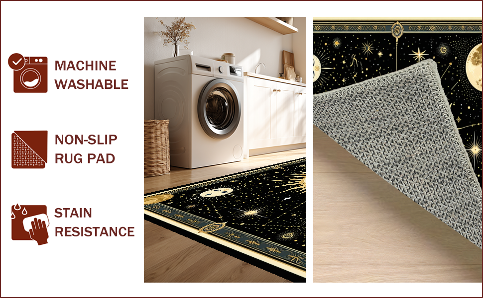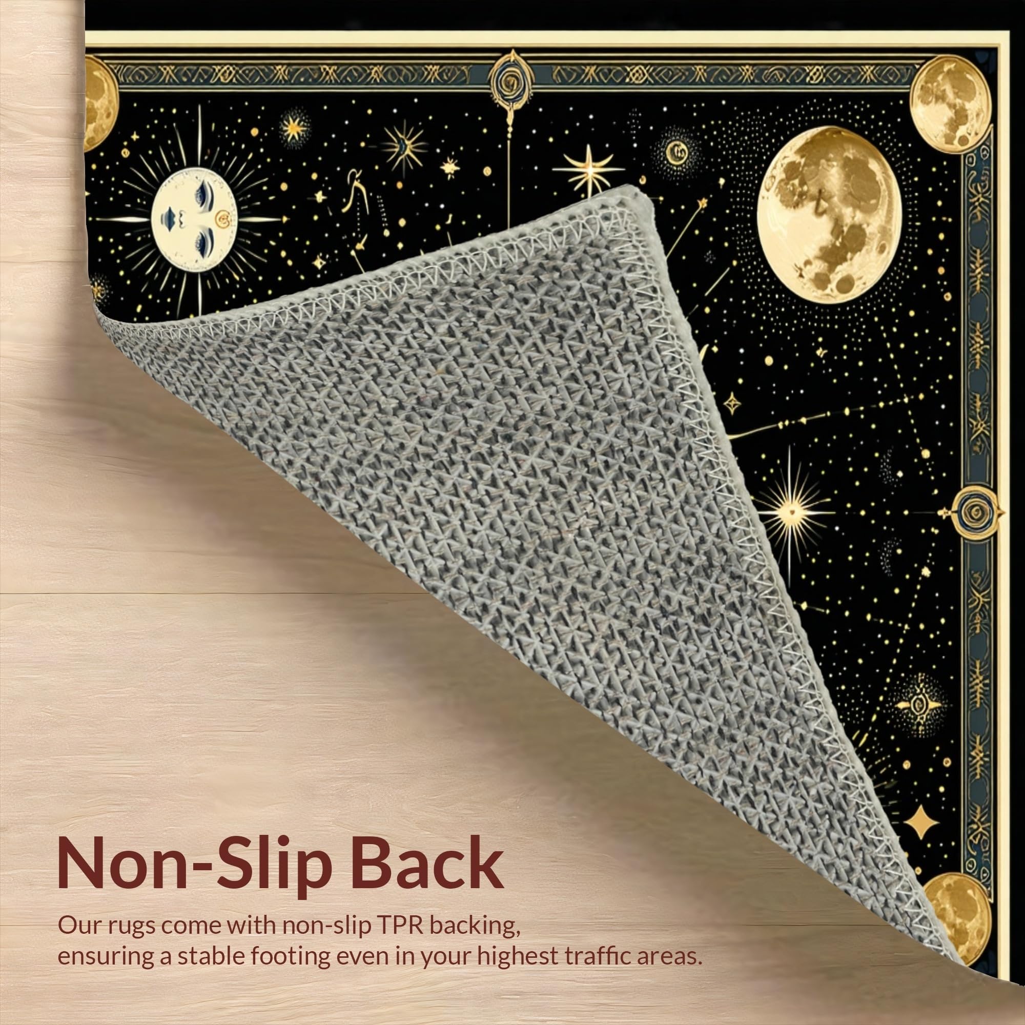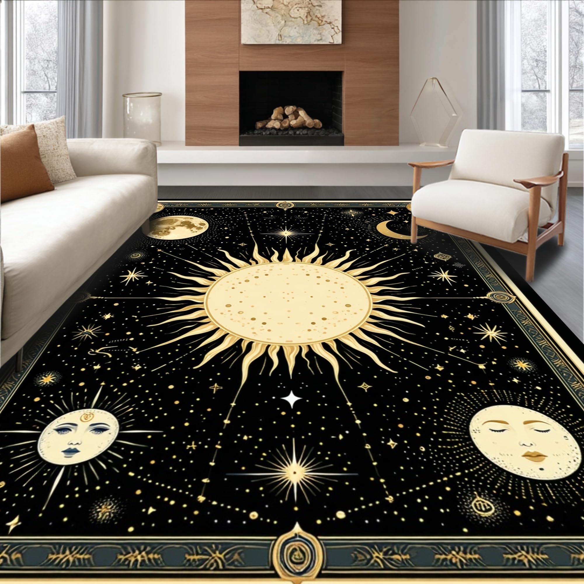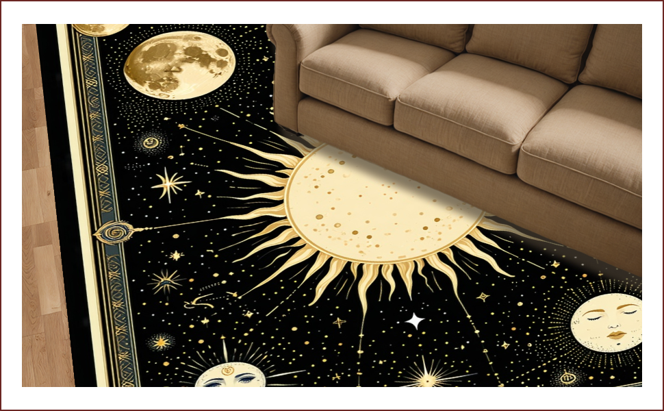 Ultra Soft Area Rug, Non Slip, Stain Resistant, Washable Area Rugs for Living Room, Bedroom, Ethereal Sun Moon Tapestry Aesthetic(Black) Overview: