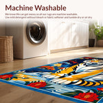Ultra Soft Area Rug, Non Slip, Stain Resistant, Washable Area Rugs for Living Room, Bedroom, Ethnic Colorful Animal Print(Blue) Overview:
