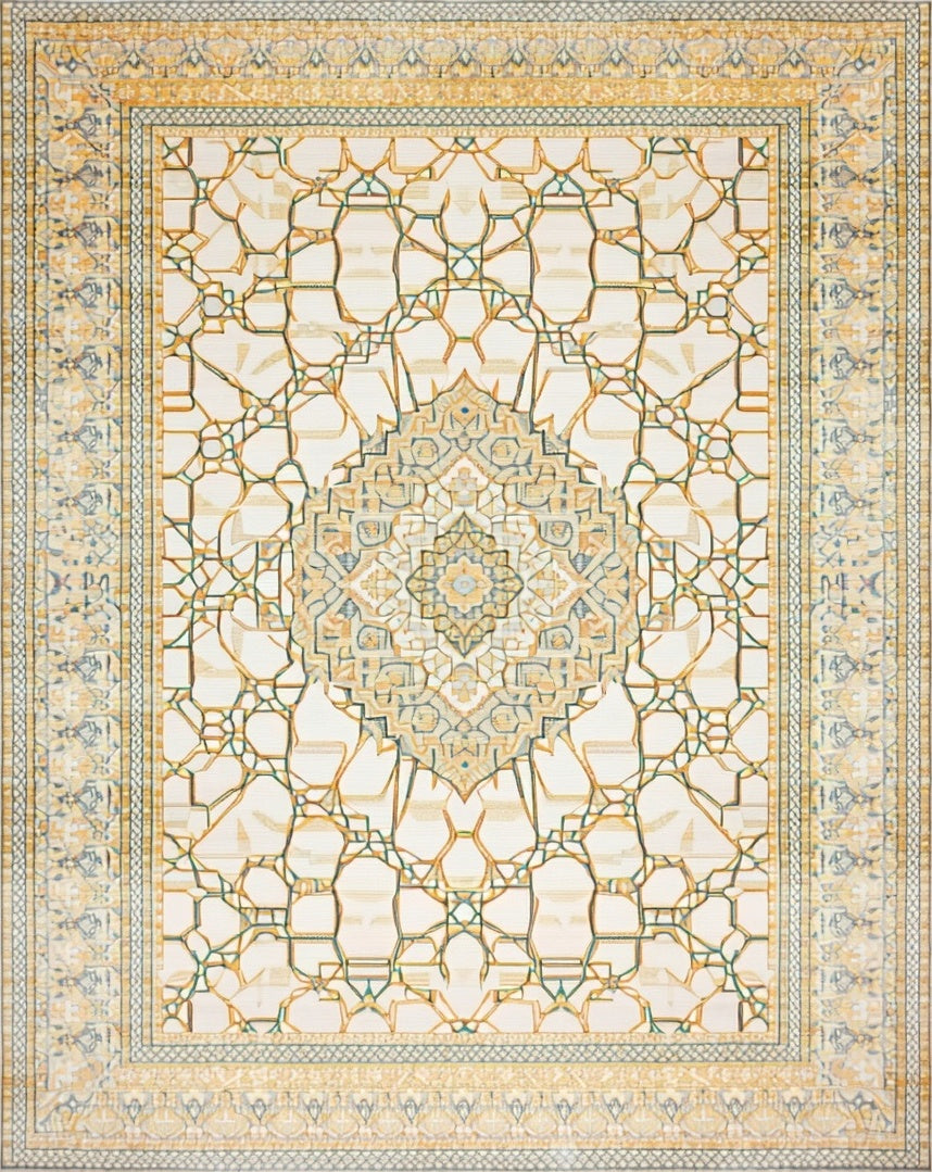 Ultra Soft Area Rug, Non Slip, Stain Resistant, Washable Area Rugs for Living Room, Bedroom, Ethnic Medallion Trellis Area Featuring Textured Linear Diamond Motifs(Beige) Overview: