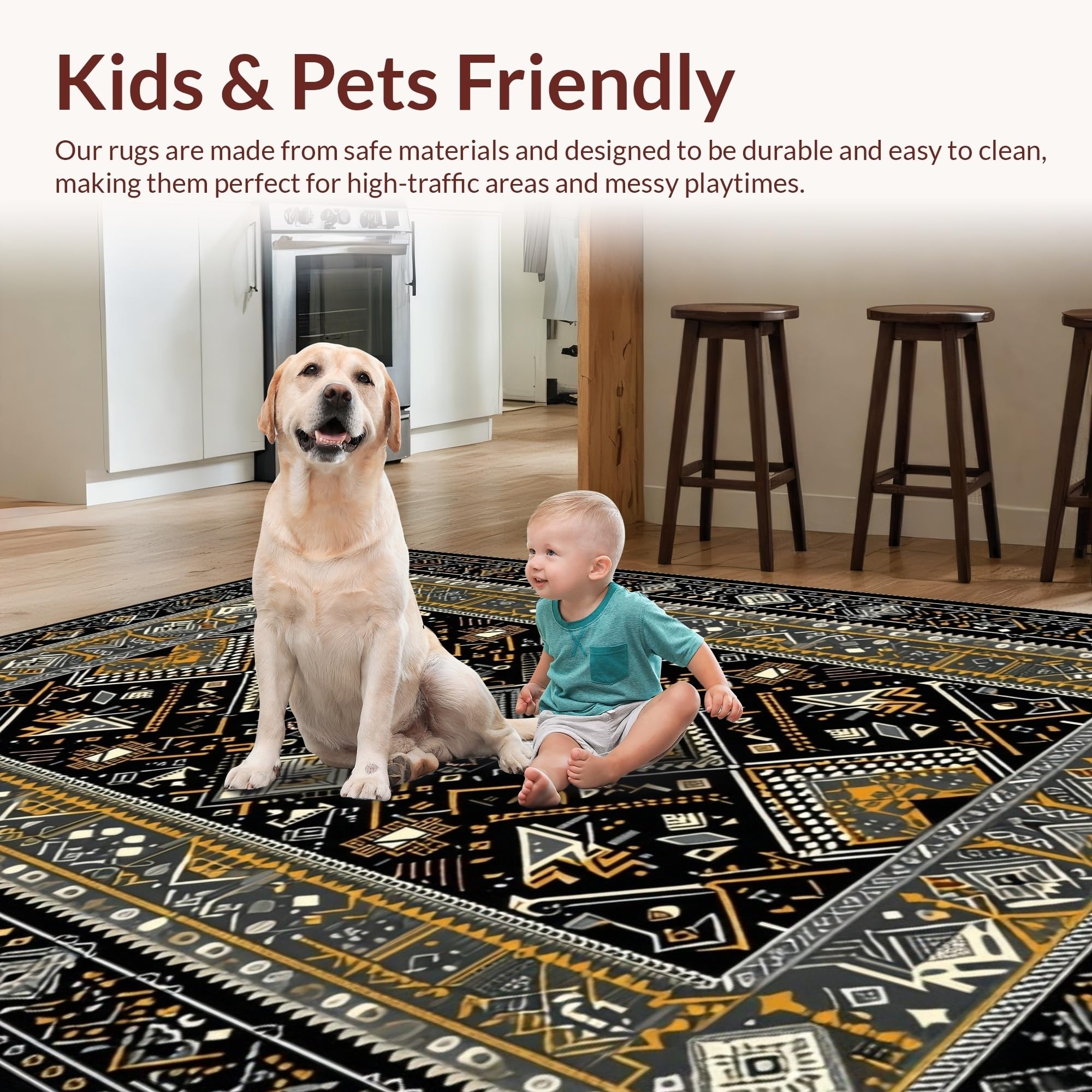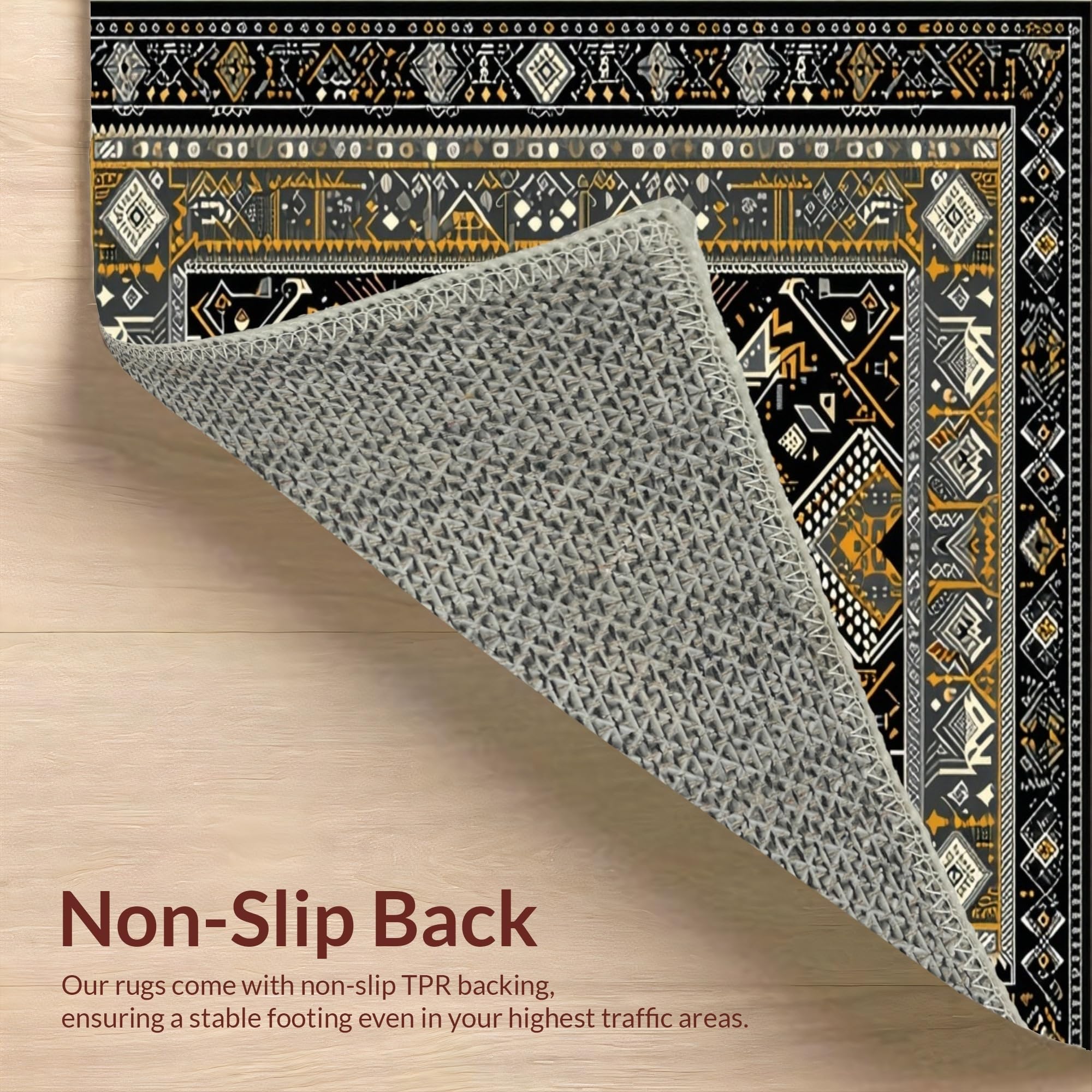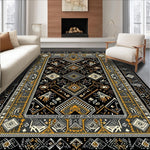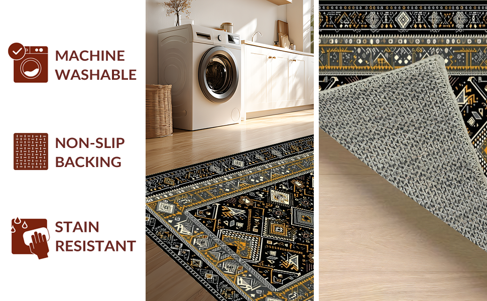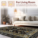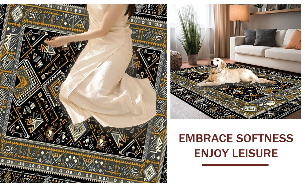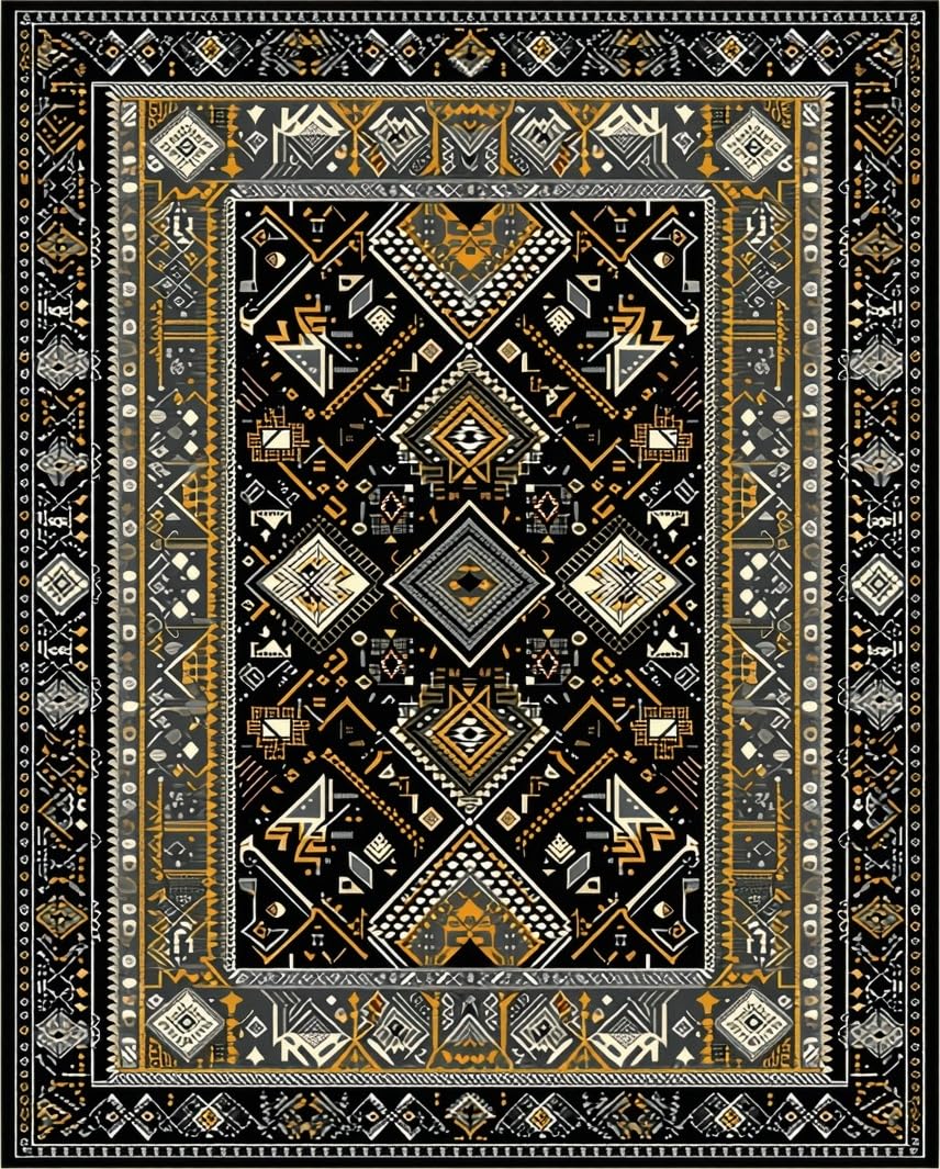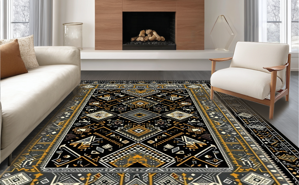 Ultra Soft Area Rug, Non Slip, Stain Resistant, Washable Area Rugs for Living Room, Bedroom, Ethnic Motif with Earthy Elegance(Black) Overview:
