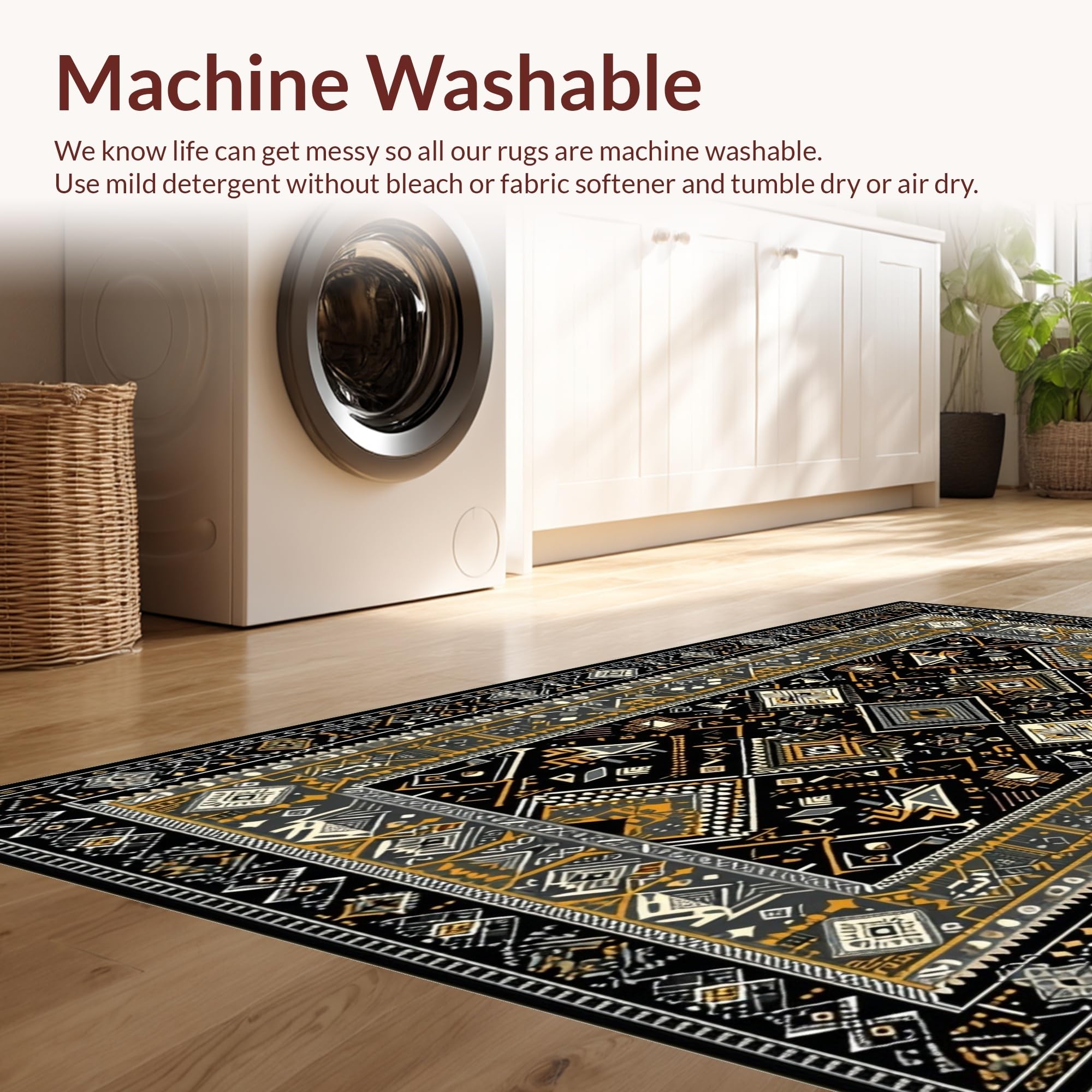 - Machine Washable: Our rugs can be easily thrown in the wash machine.