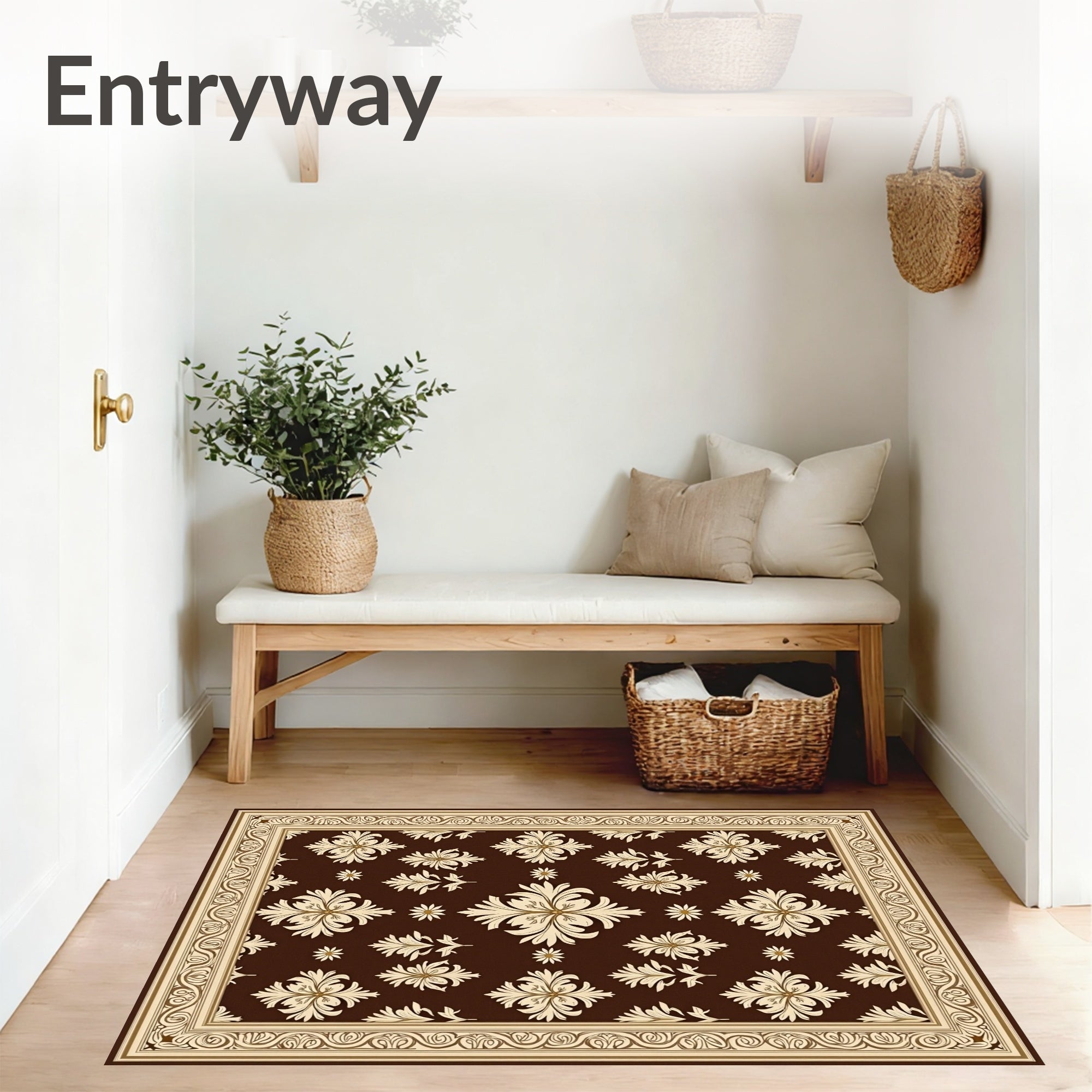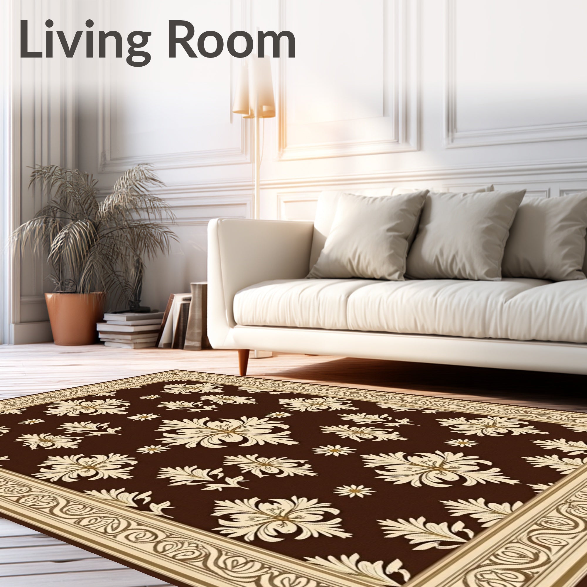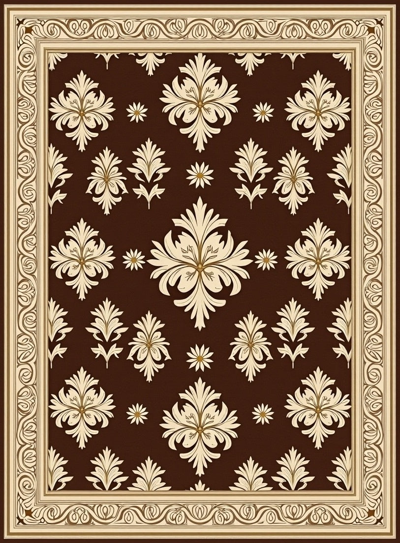 Flatwoven High Traffic Area Rug, European Damask Tufted with Raised Floral Emblems, Non Slip, Stain Resistant, Washable Area Rugs for Living Room, Bedroom (Brown) Overview: