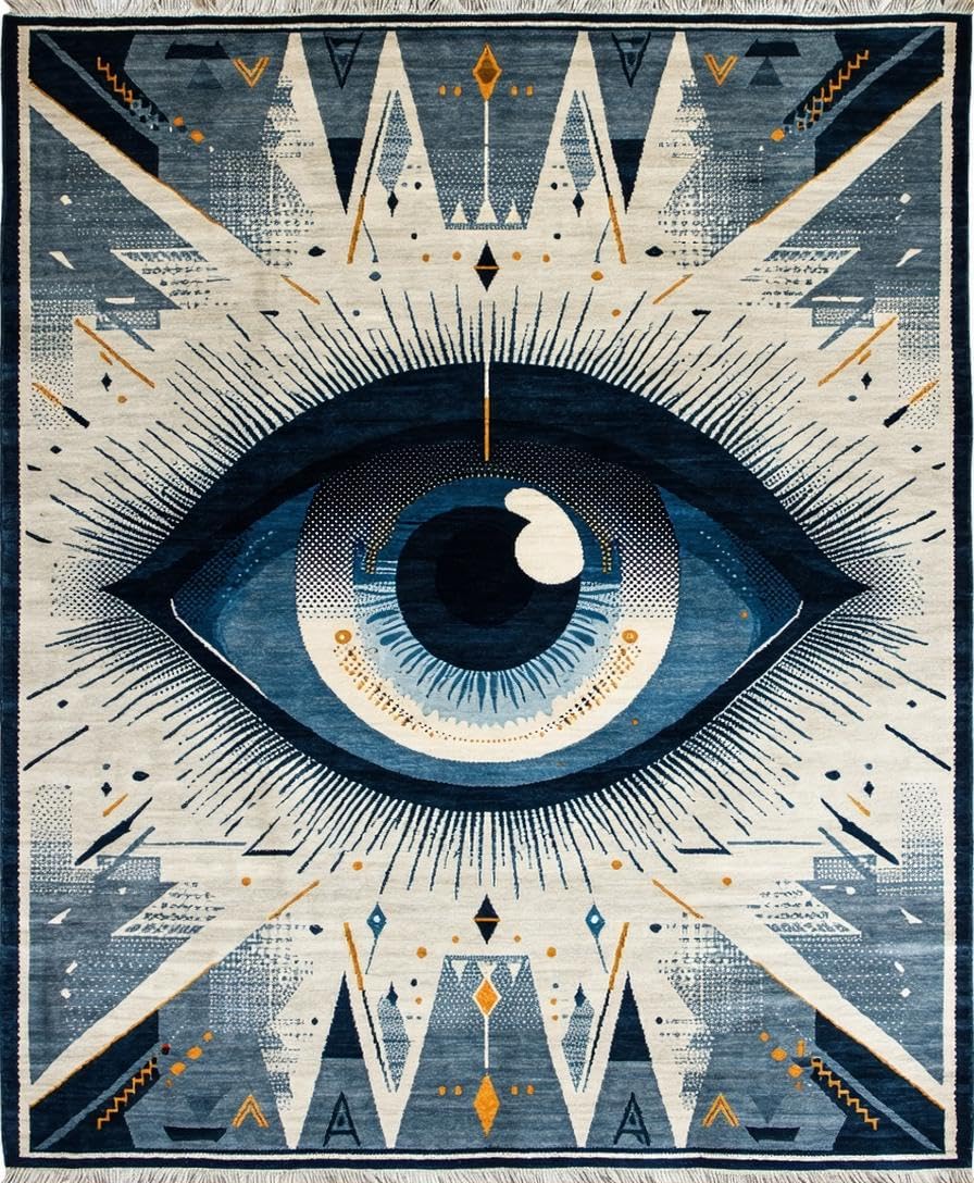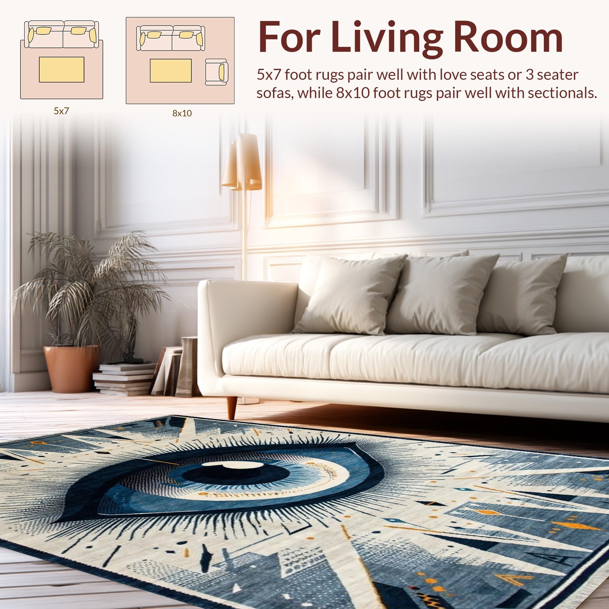 Ultra Soft Area Rug, Non Slip, Stain Resistant, Washable Area Rugs for Living Room, Bedroom, Evil Eye Ethnic Patterned Accent(Blue) Overview:
