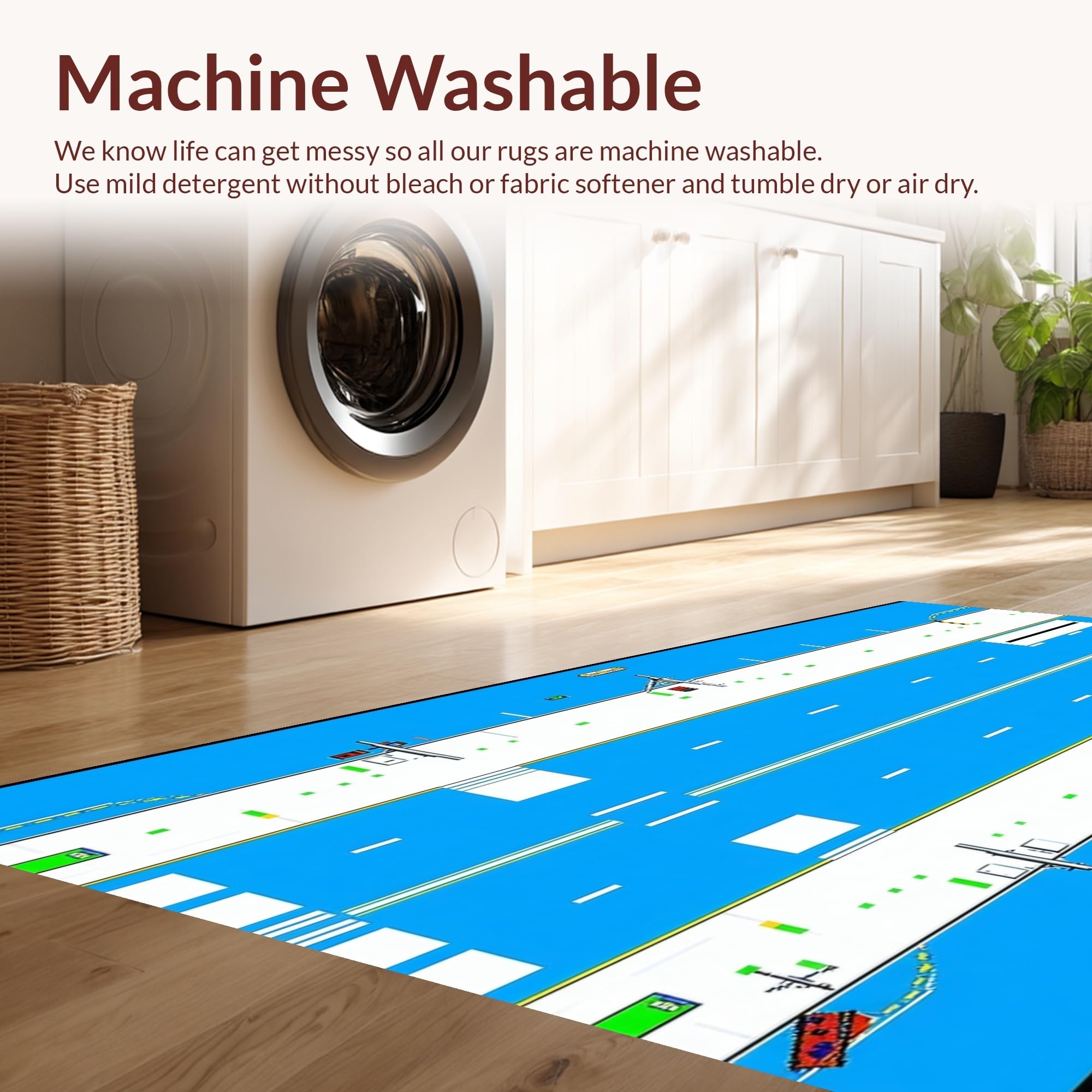 Ultra Soft Area Rug, Non Slip, Stain Resistant, Washable Area Rugs for Living Room, Bedroom, Exciting Aeronautical Traffic Layout(Blue) Overview: