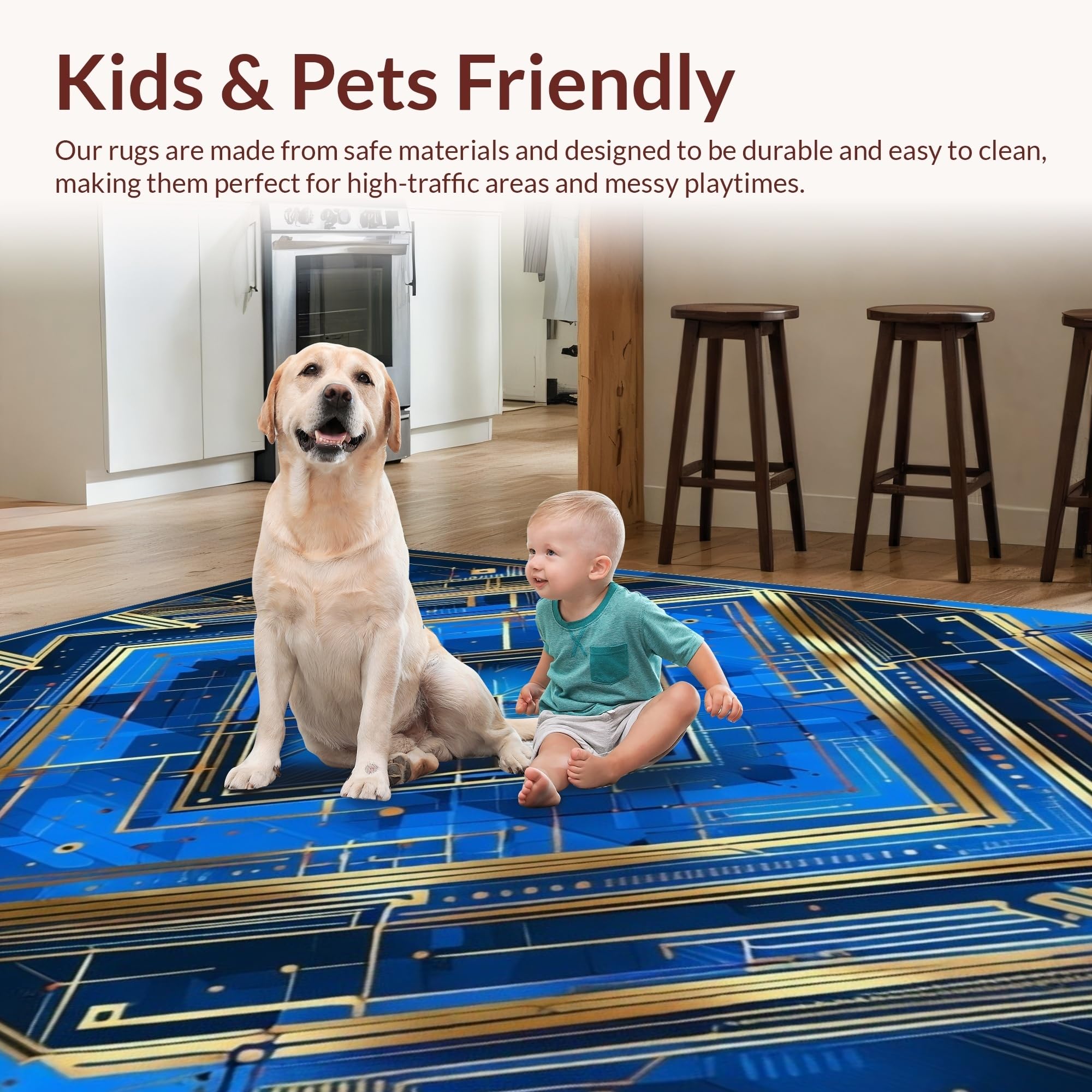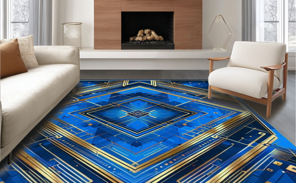 Ultra Soft Area Rug, Non Slip, Stain Resistant, Washable Area Rugs for Living Room, Bedroom, Exclusive Abstract Design Palette(Blue) Overview: