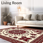 Ultra Soft Area Rug, Non Slip, Stain Resistant, Washable Area Rugs for Living Room, Bedroom, Exotic Bazaar Jewel Floral Symmetrical Entryway Charm(Beige) Overview: