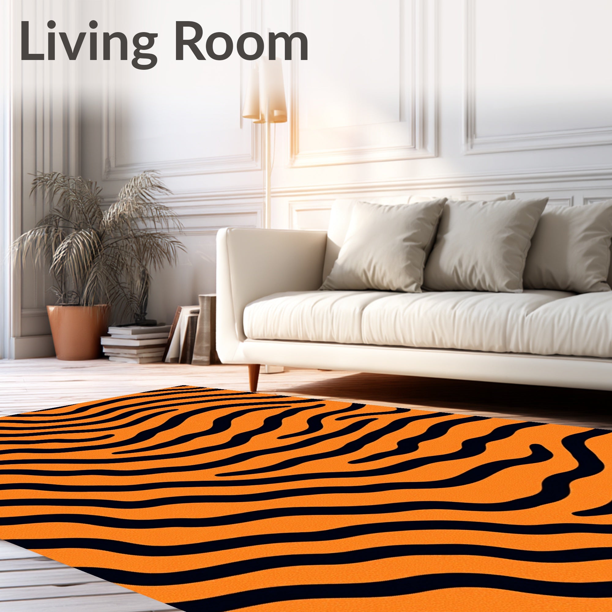 Ultra Soft Area Rug, Non Slip, Stain Resistant, Washable Area Rugs for Living Room, Bedroom, Exotic Jungle Stripes Decorative Floor Covering(Orange) Overview: