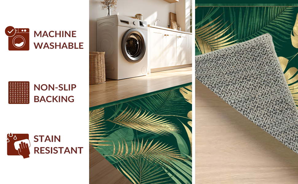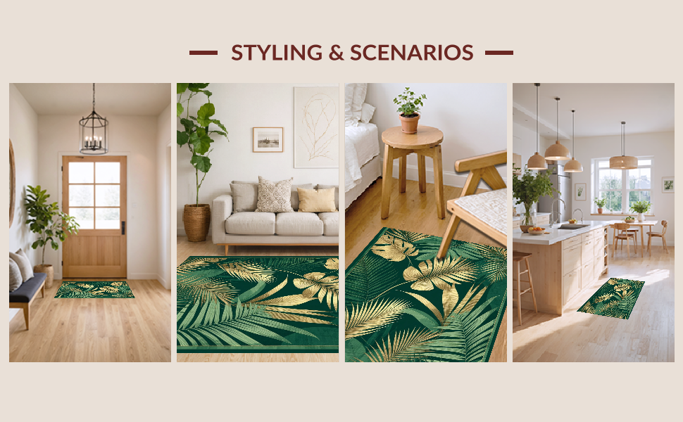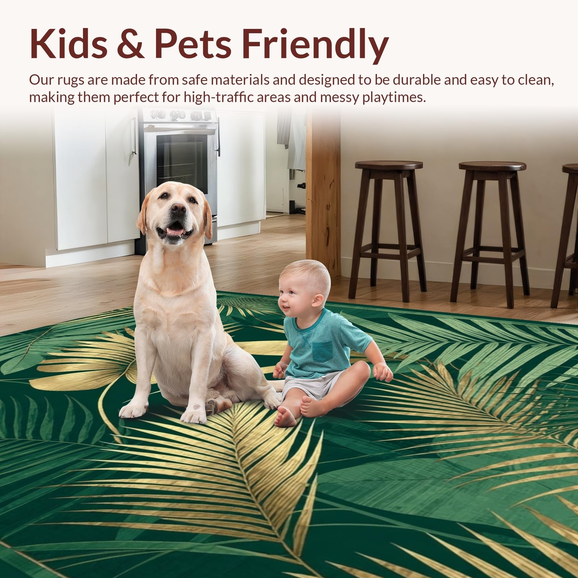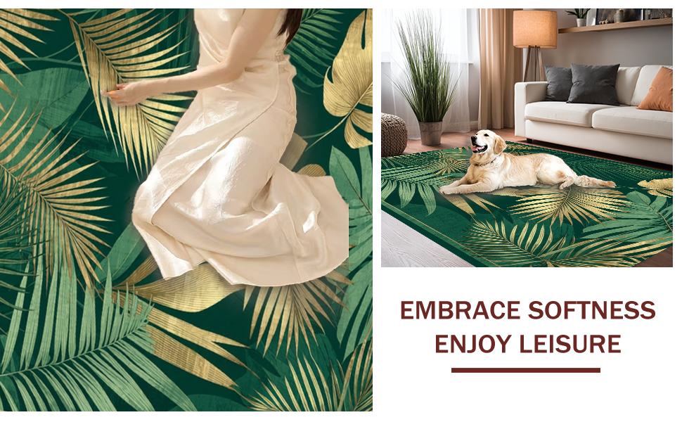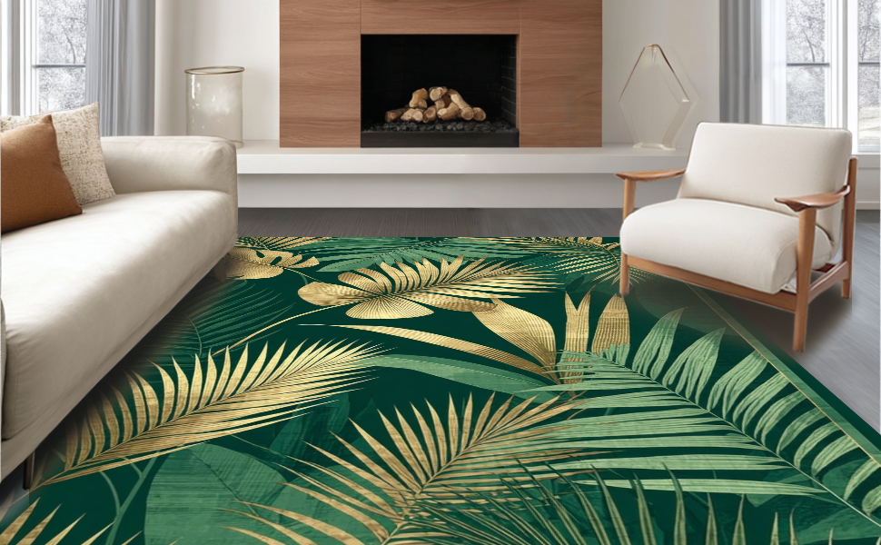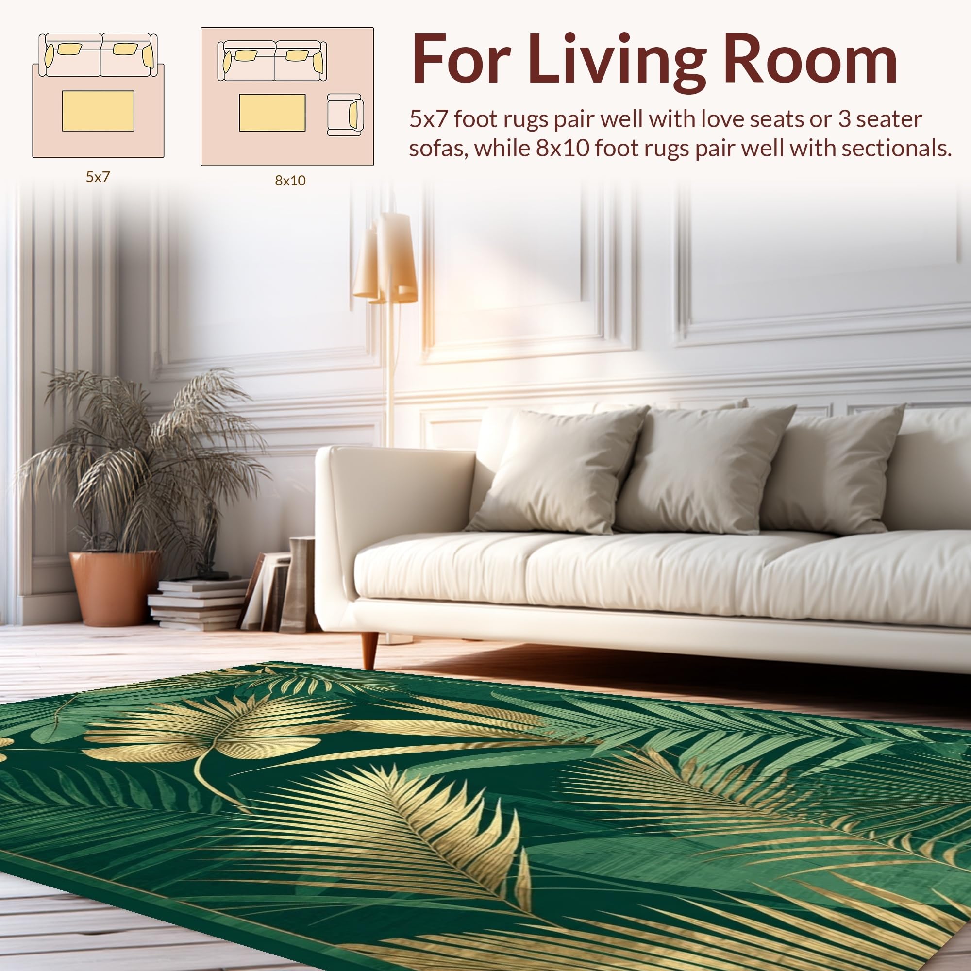 Ultra Soft Area Rug, Non Slip, Stain Resistant, Washable Area Rugs for Living Room, Bedroom, Exotic Leafy Symmetrical Design(Green) Overview: