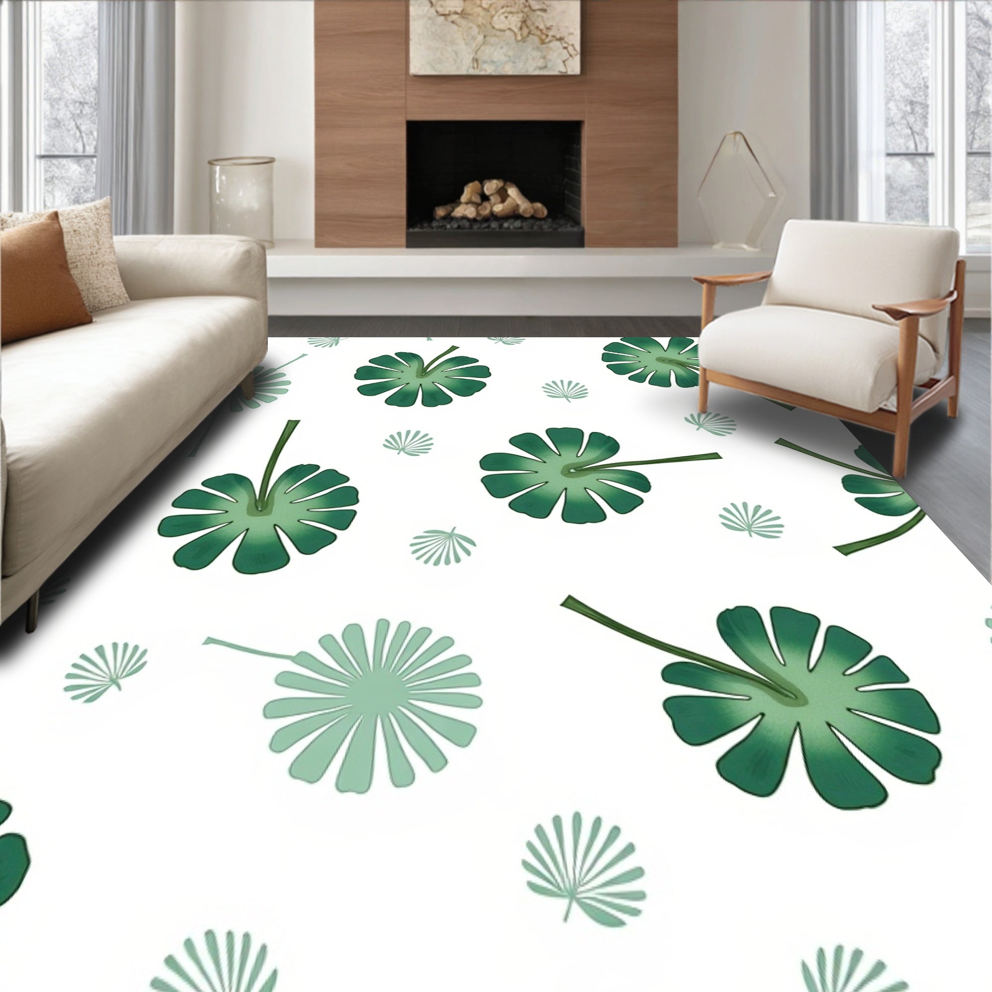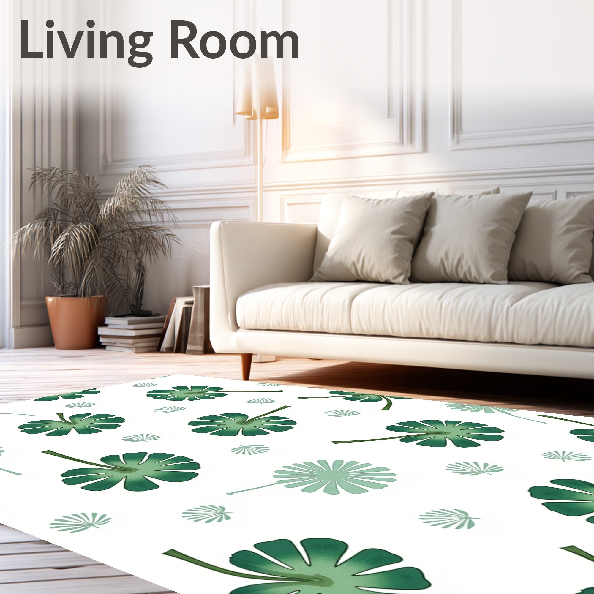 Ultra Soft Area Rug, Non Slip, Stain Resistant, Washable Area Rugs for Living Room, Bedroom, Exotic Monstera Frond Elegant Botanical Illustration Arrangement(Green) Overview: