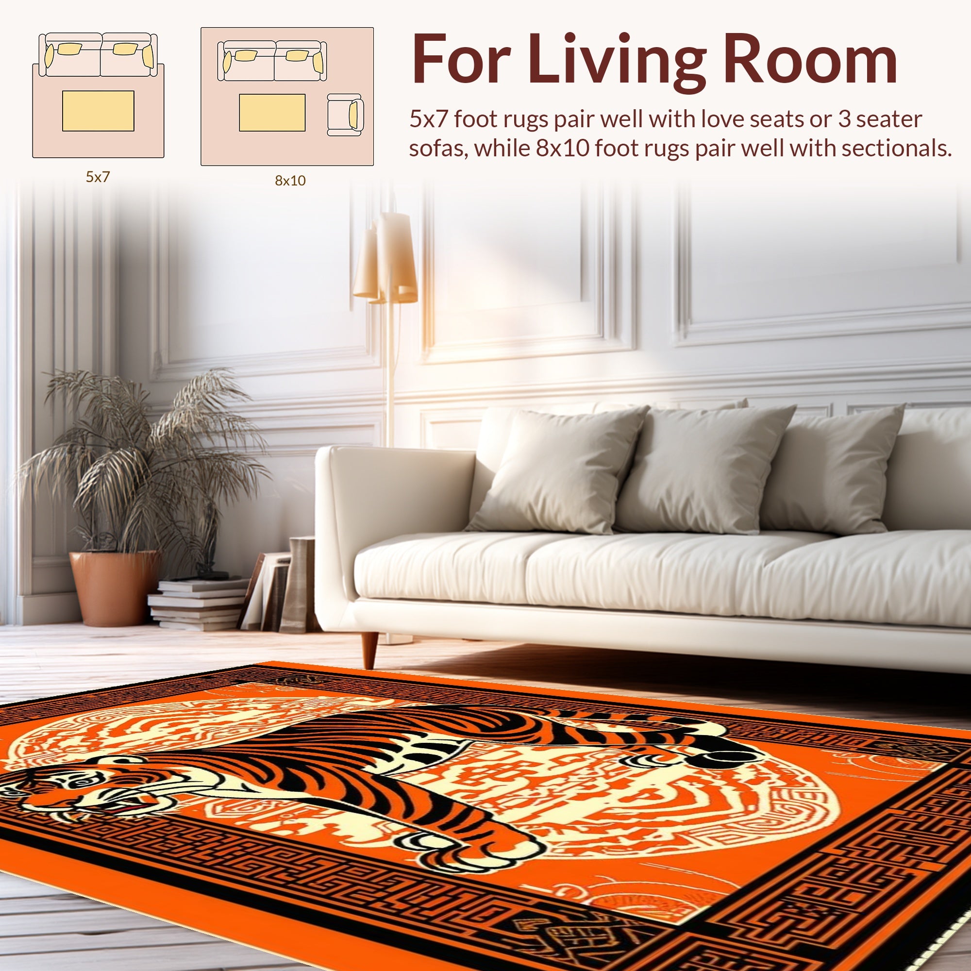 Flatwoven High Traffic Area Rug, Exotic Orange Tiger Aesthetic, Non Slip, Stain Resistant, Washable Area Rugs for Living Room, Bedroom (Orange) Overview: