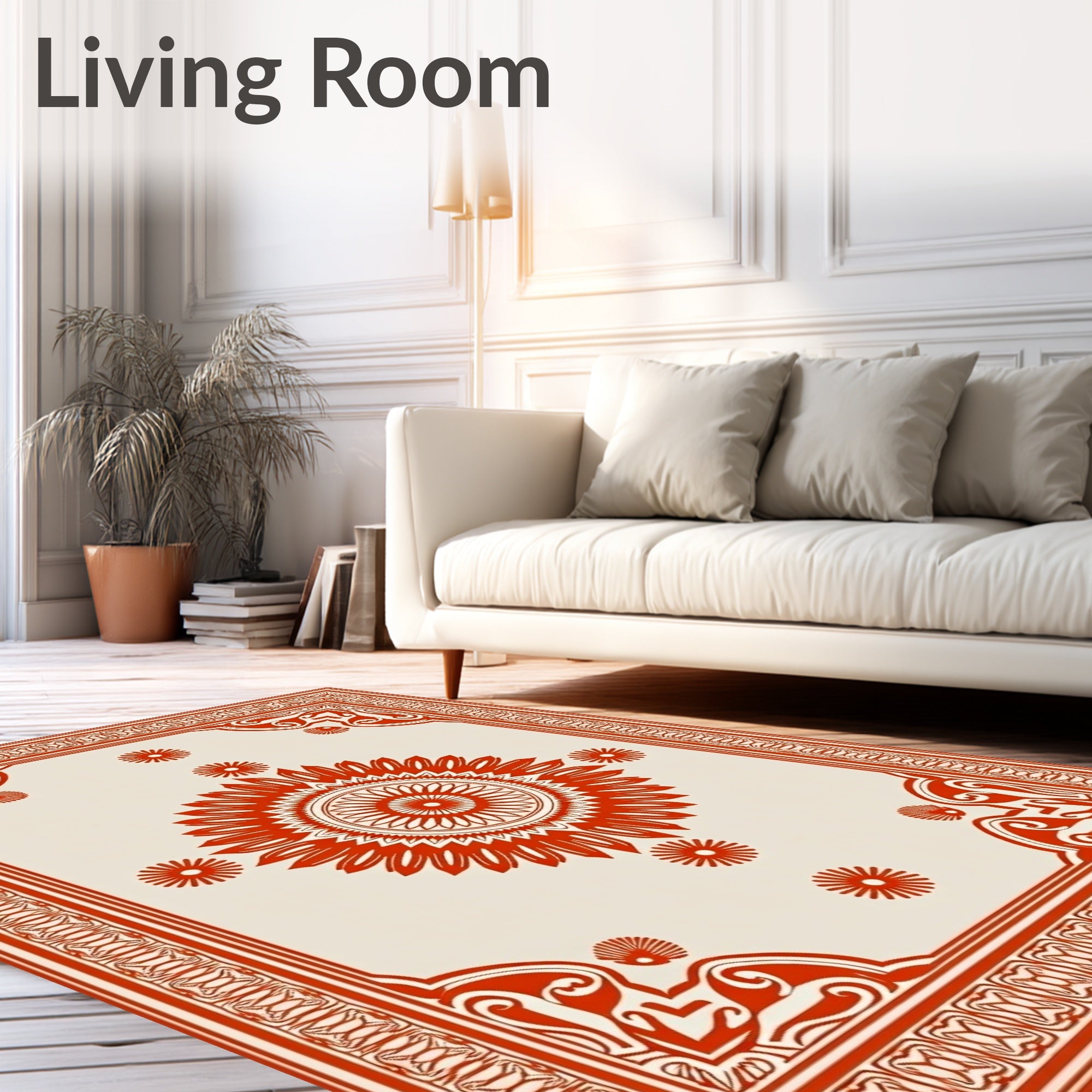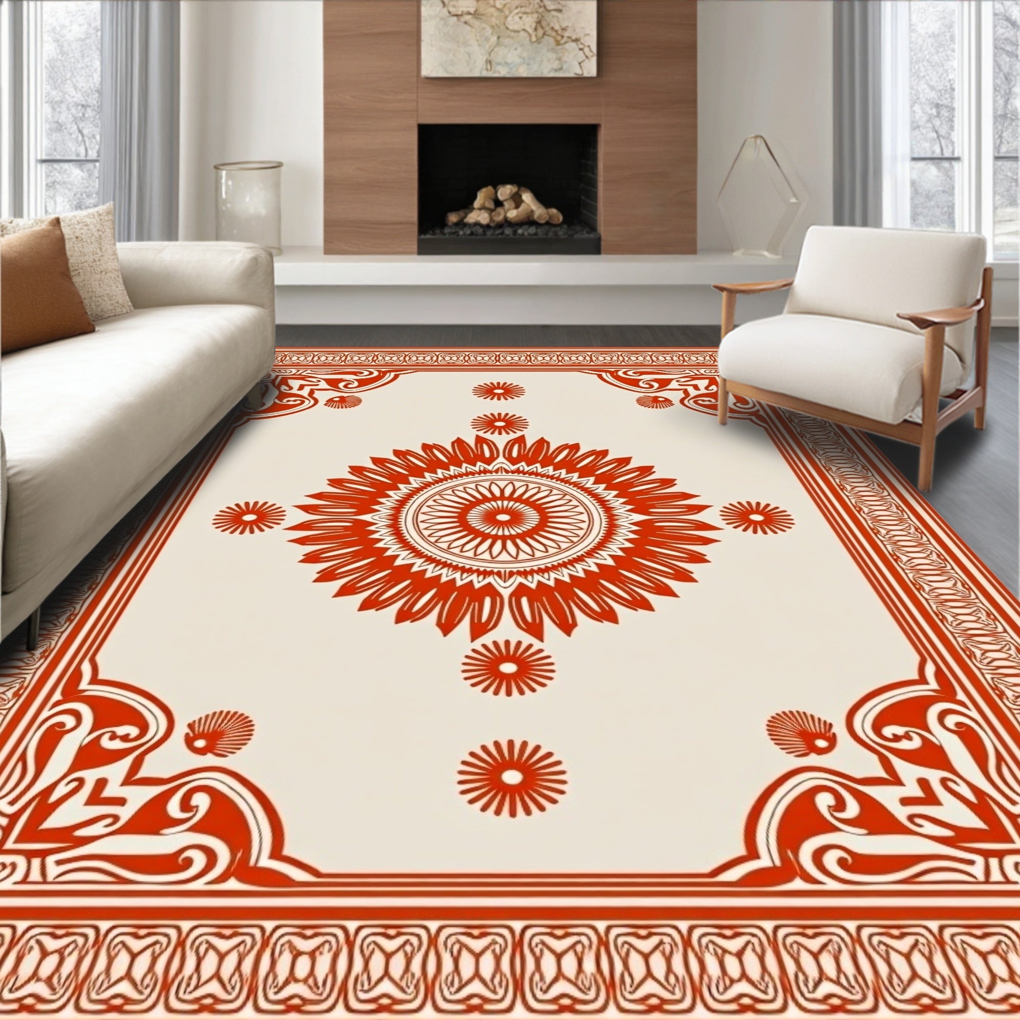 Ultra Soft Area Rug, Non Slip, Stain Resistant, Washable Area Rugs for Living Room, Bedroom, Exquisite Radial Symmetry Boho Artisan Crafted Decorative(Beige) Overview: