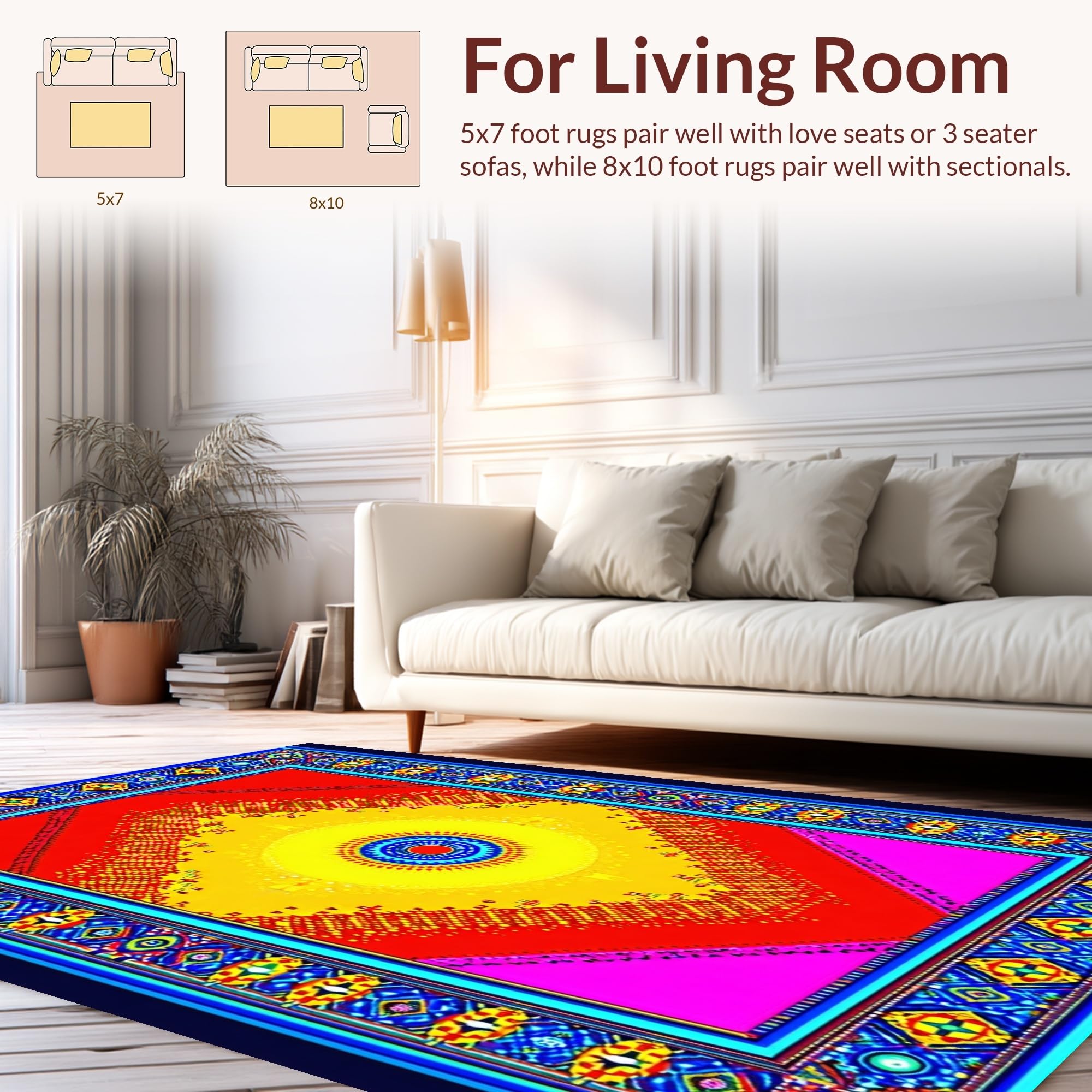 Ultra Soft Area Rug, Non Slip, Stain Resistant, Washable Area Rugs for Living Room, Bedroom, Exuberant Peaceful Vibe Tapestry(Red) Overview:
