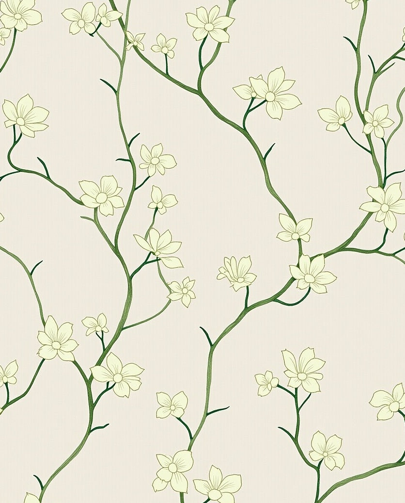 Faded Chinoiserie Blossom Print with Delicate Branch Networks(Ivory)