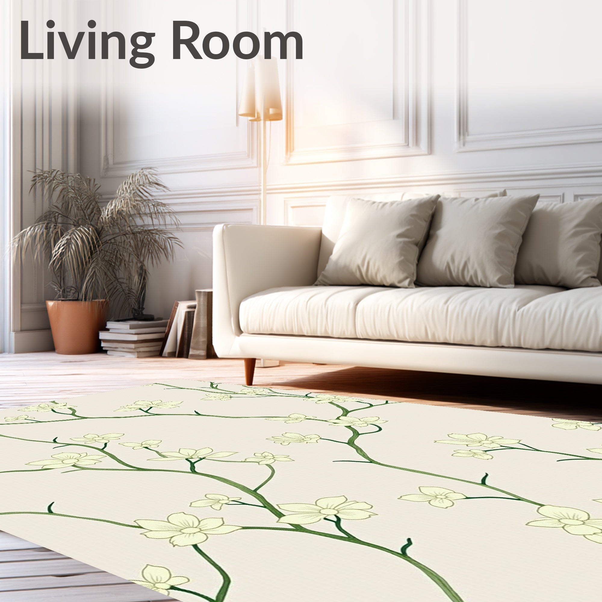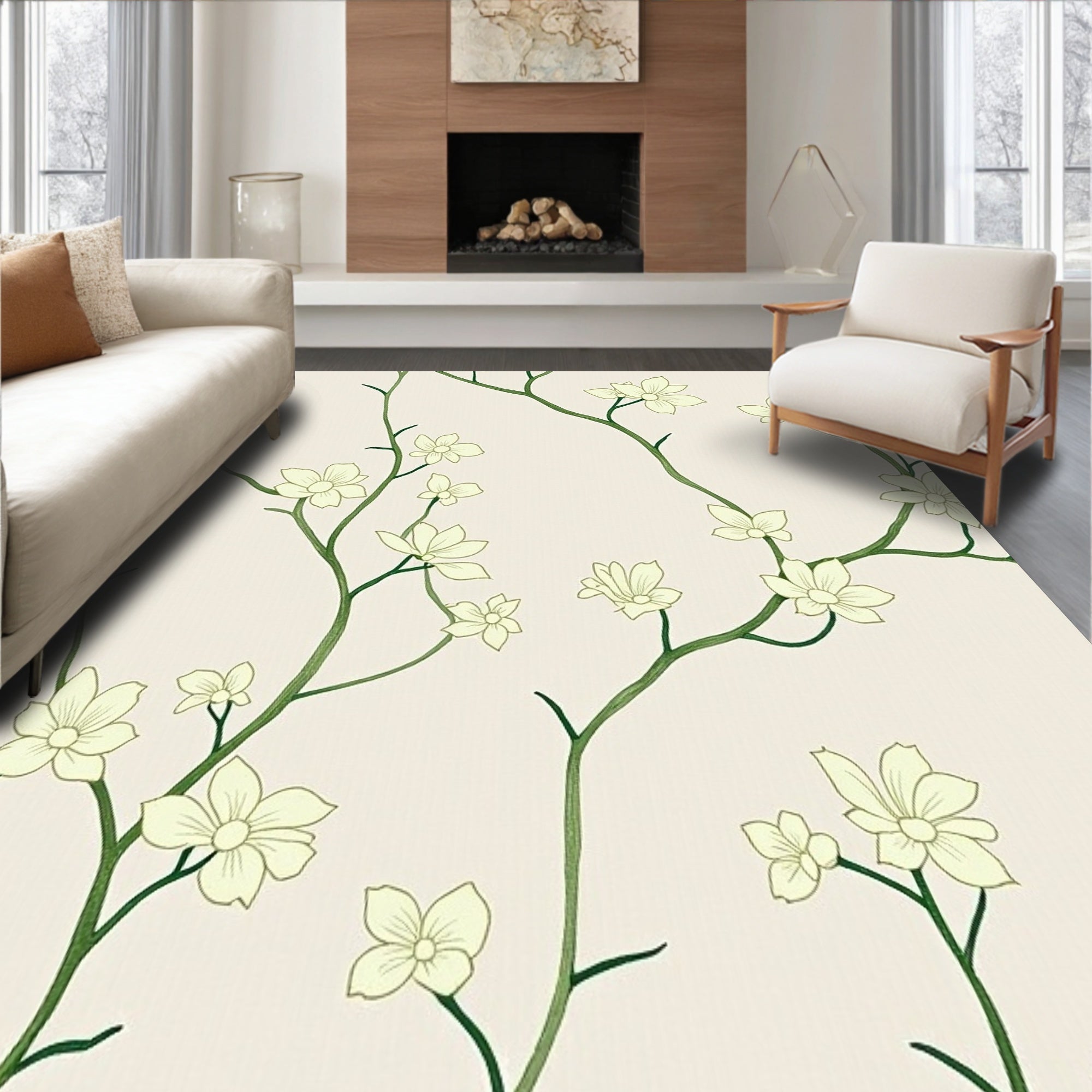 Ultra Soft Area Rug, Non Slip, Stain Resistant, Washable Area Rugs for Living Room, Bedroom, Faded Chinoiserie Blossom Print with Delicate Branch Networks(Ivory) Overview: