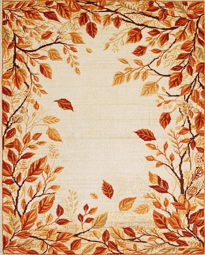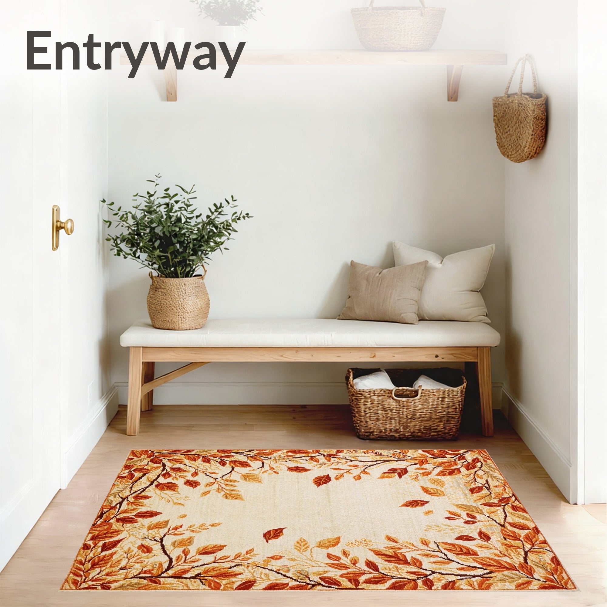 Ultra Soft Area Rug, Non Slip, Stain Resistant, Washable Area Rugs for Living Room, Bedroom, Fallen Leaves Circular Area in Earthy Shades and Floral(Beige) Overview: