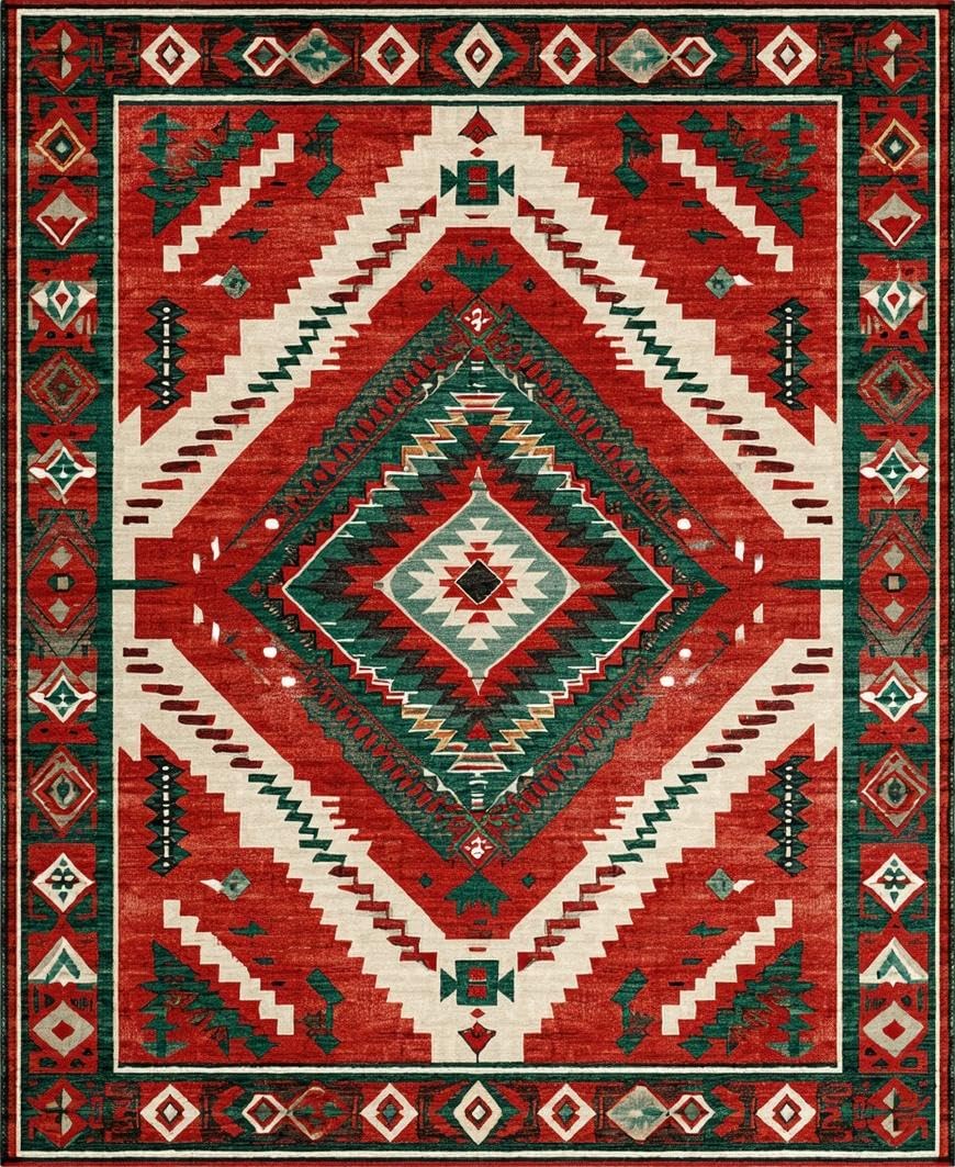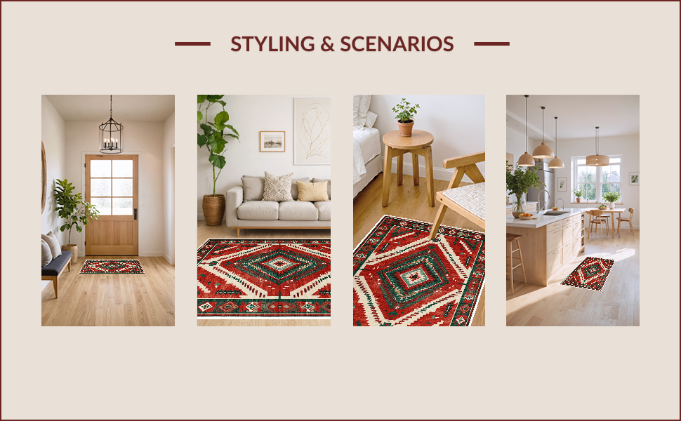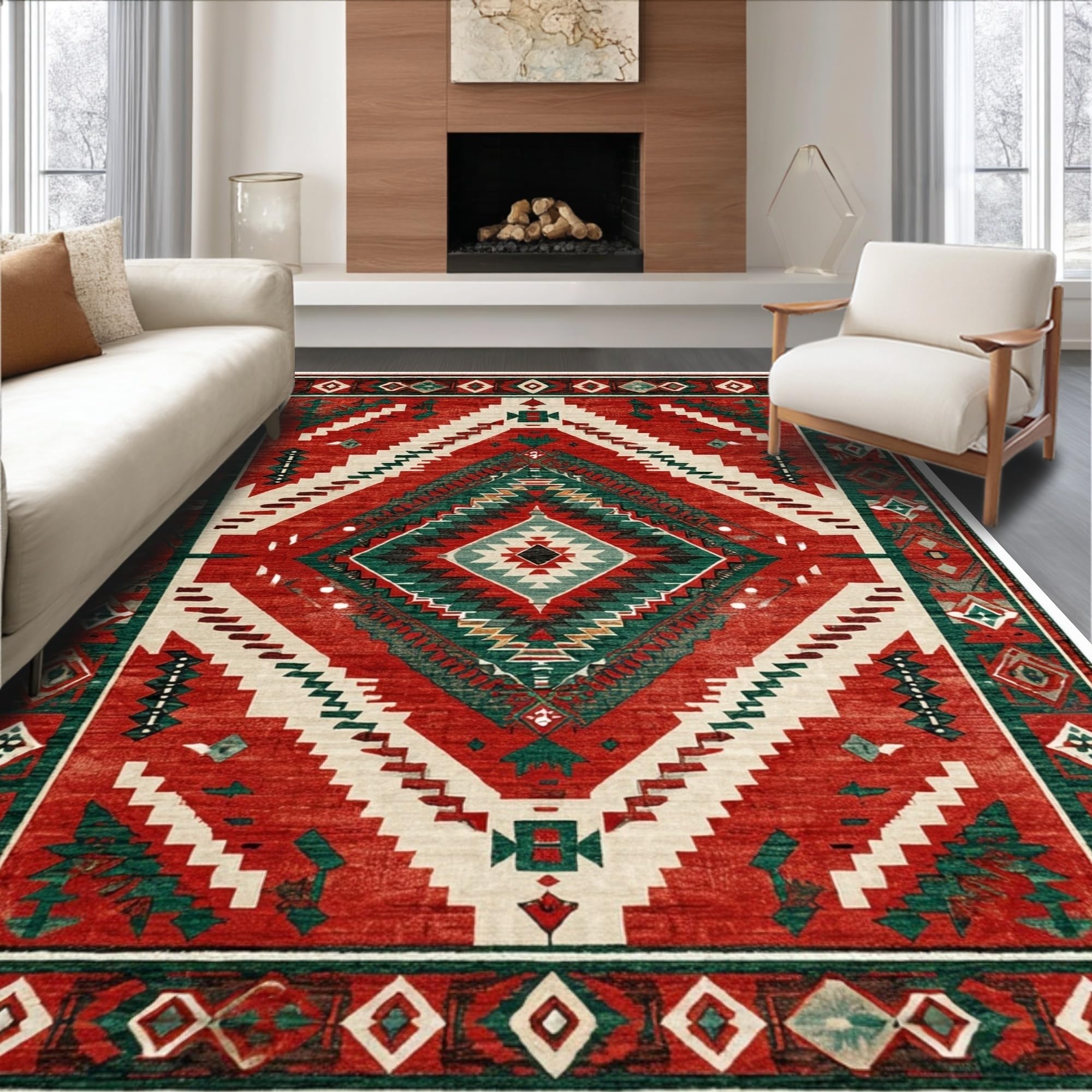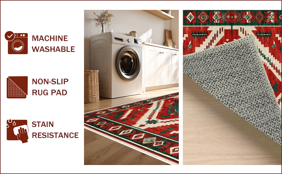 Ultra Soft Area Rug, Non Slip, Stain Resistant, Washable Area Rugs for Living Room, Bedroom, Farmhouse Vintage Christmas Living Room Washable Carpet(Red) Overview: