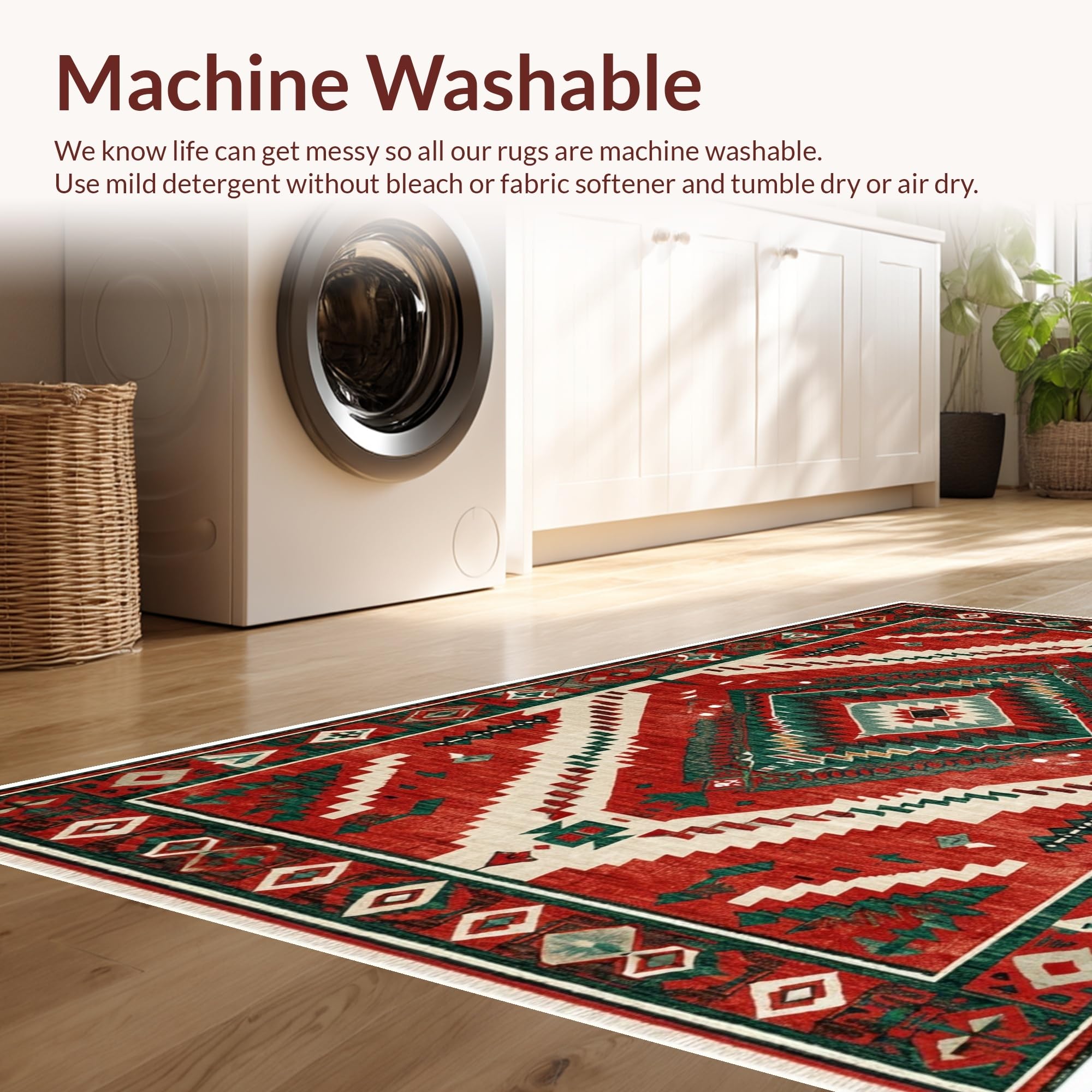 - Machine Washable: Our rugs can be easily thrown in the wash machine.