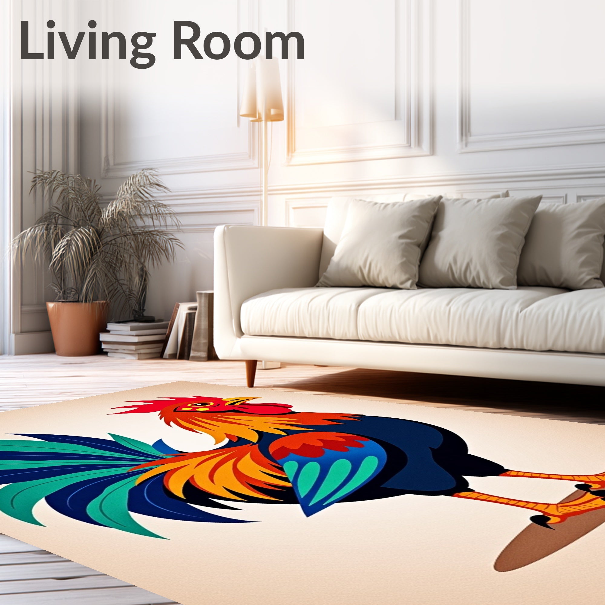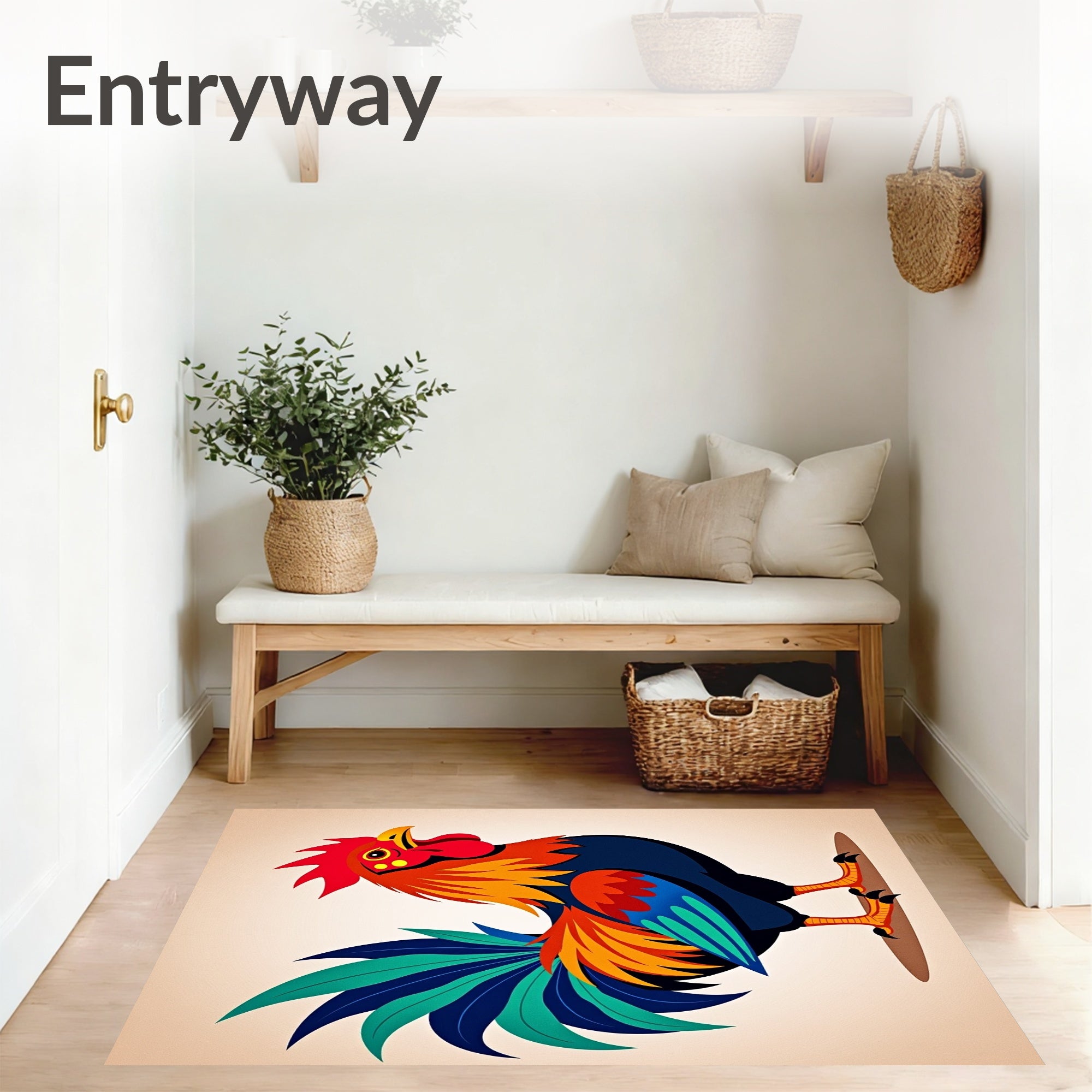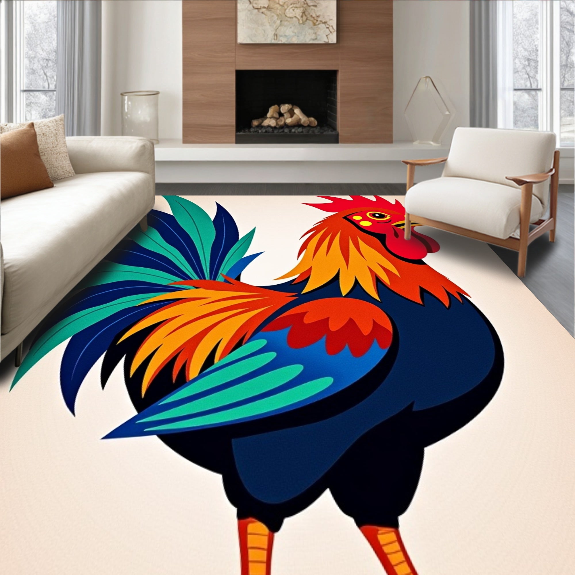 Ultra Soft Area Rug, Non Slip, Stain Resistant, Washable Area Rugs for Living Room, Bedroom, Farmyard Cockerel Half Moon Welcome Entrance Decorative(Red) Overview: