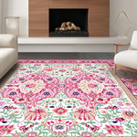 Ultra Soft Area Rug, Non Slip, Stain Resistant, Washable Area Rugs for Living Room, Bedroom, Feminine Elegant Floral Tapestry(White) Overview: