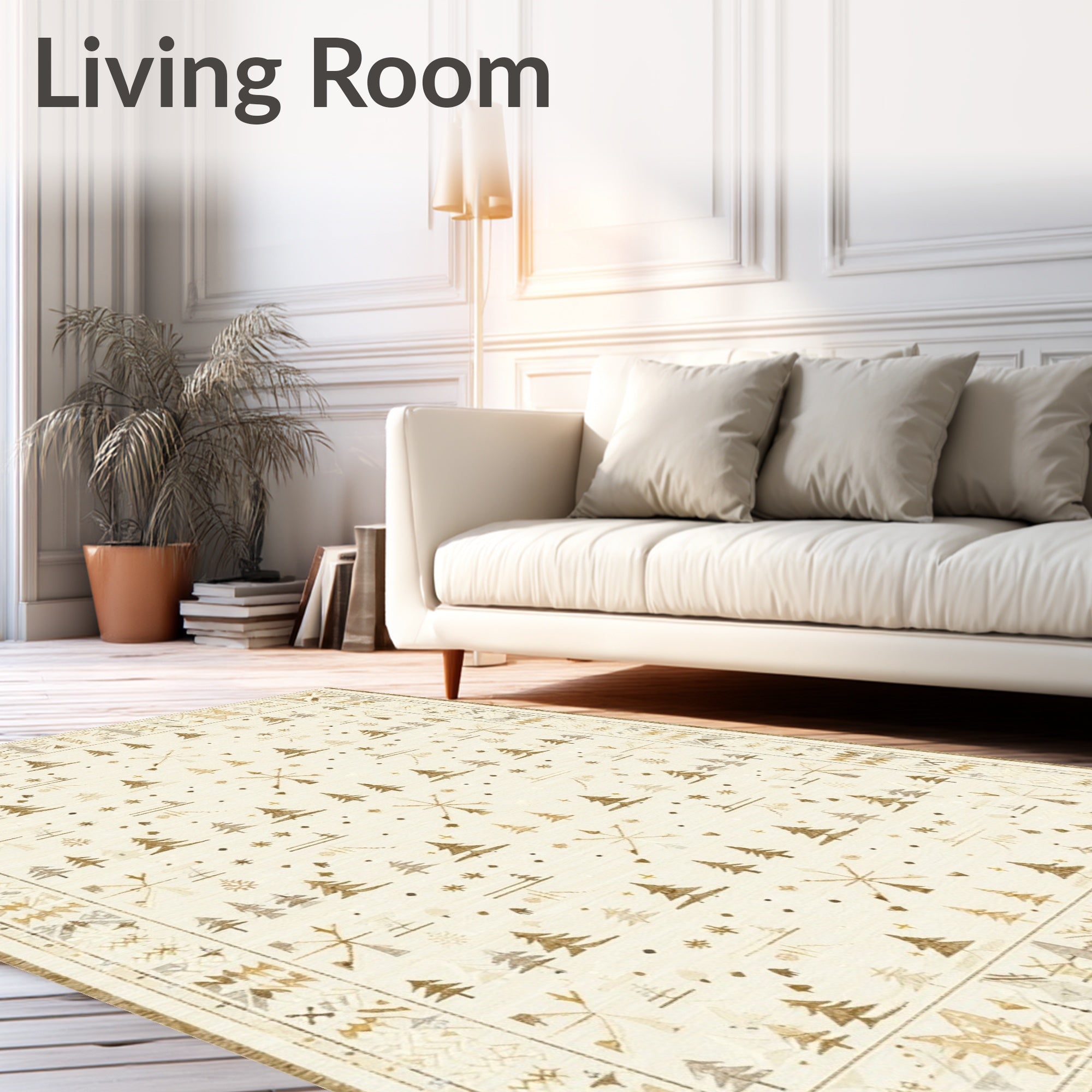 Ultra Soft Area Rug, Non Slip, Stain Resistant, Washable Area Rugs for Living Room, Bedroom, Festive Beige Xmas Tree(Beige) Overview: