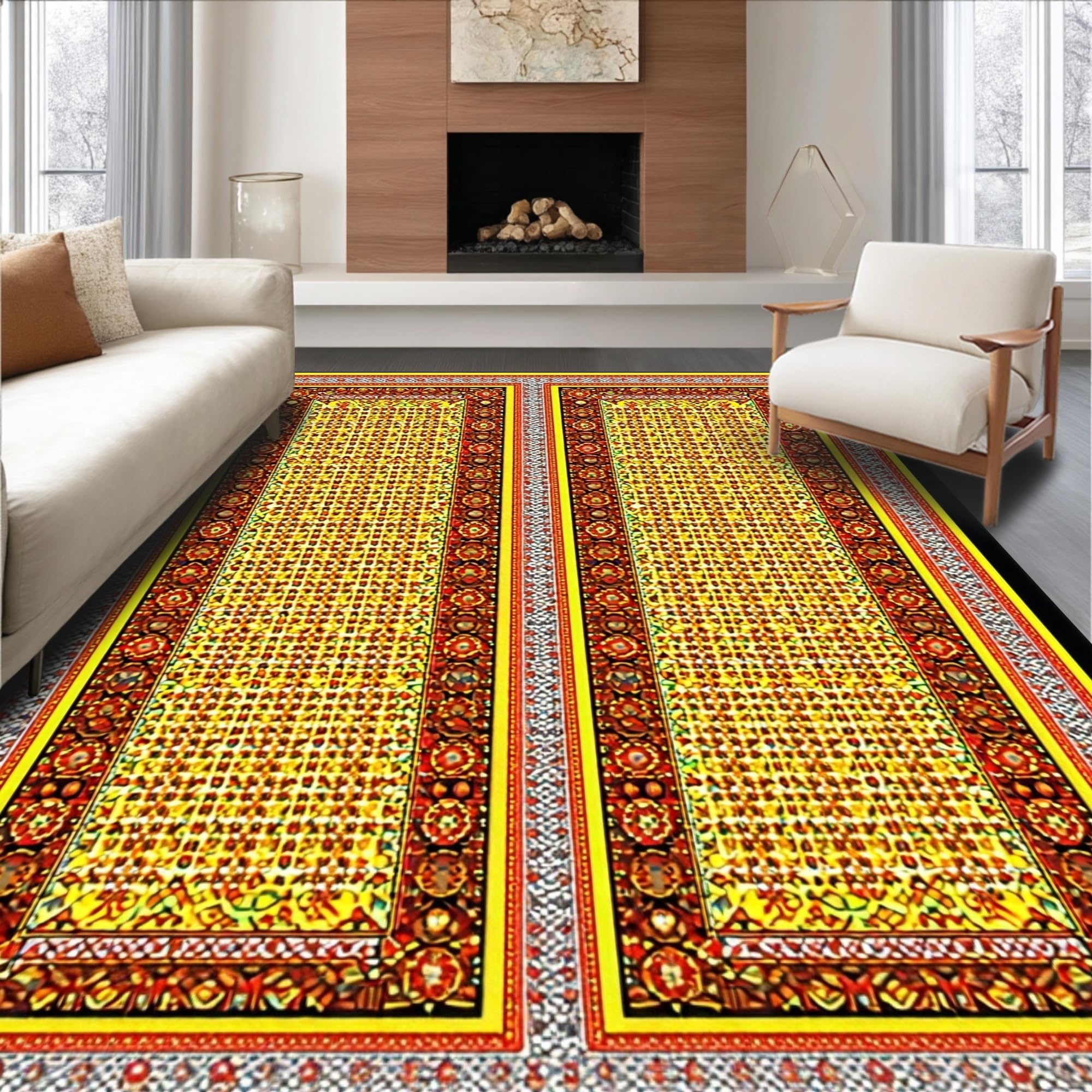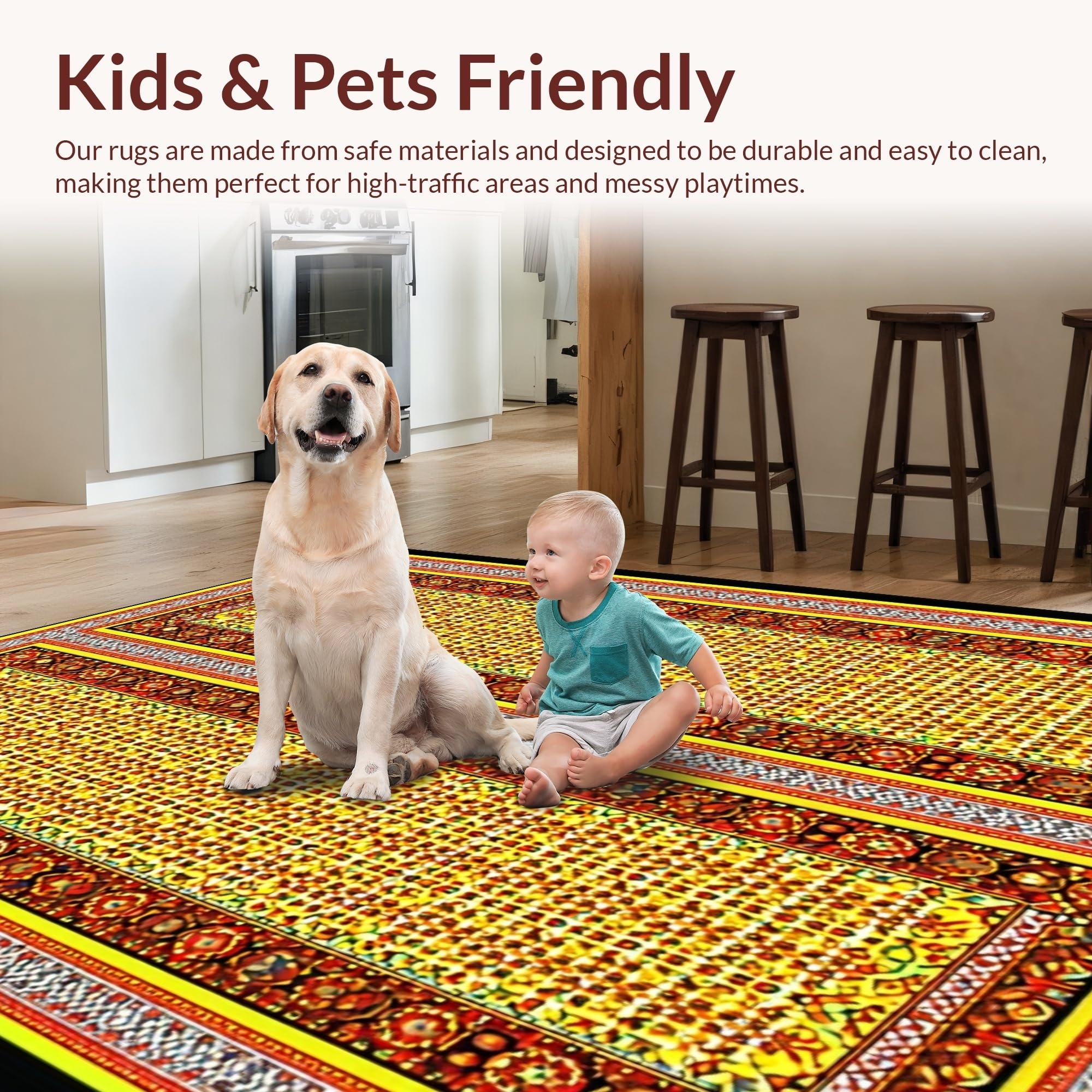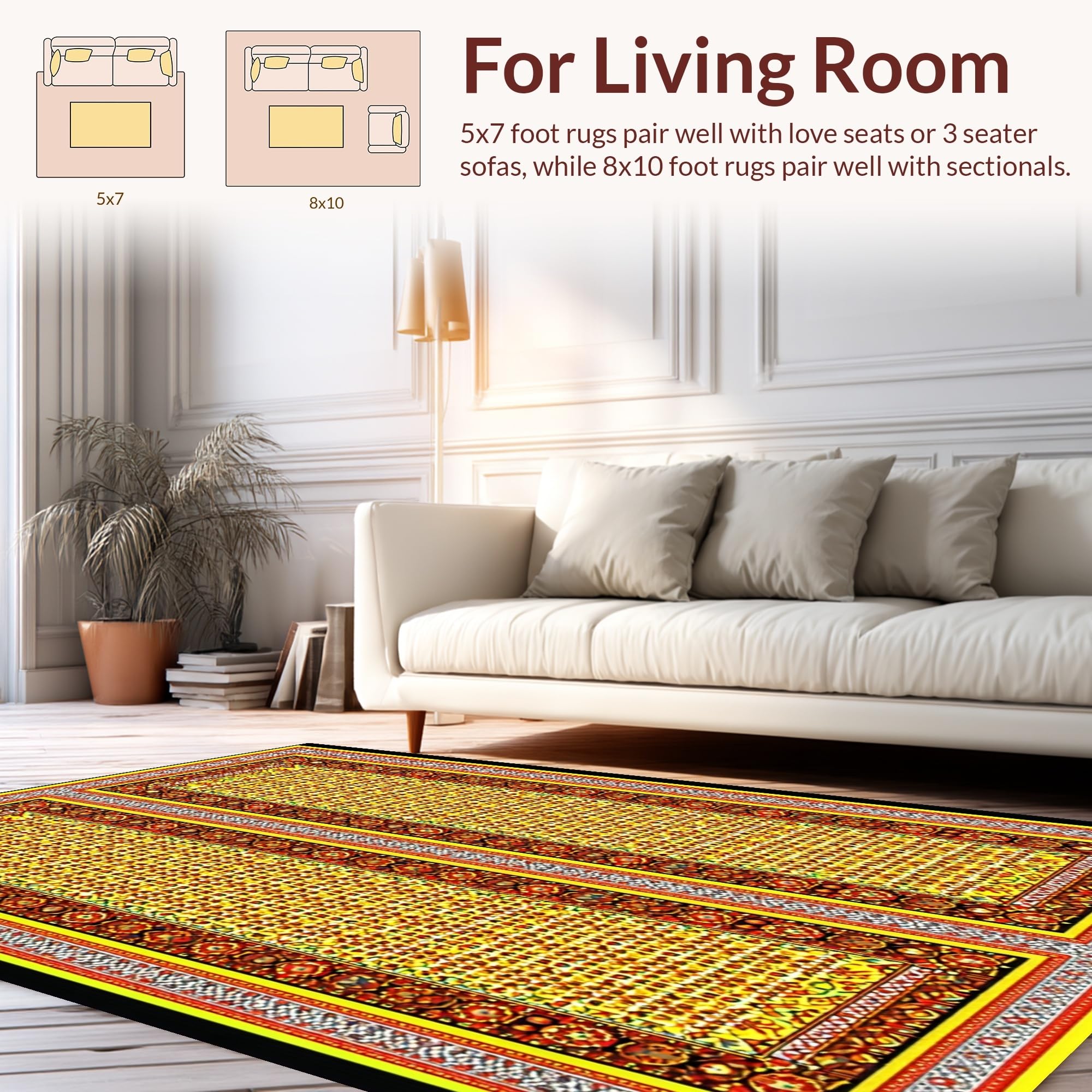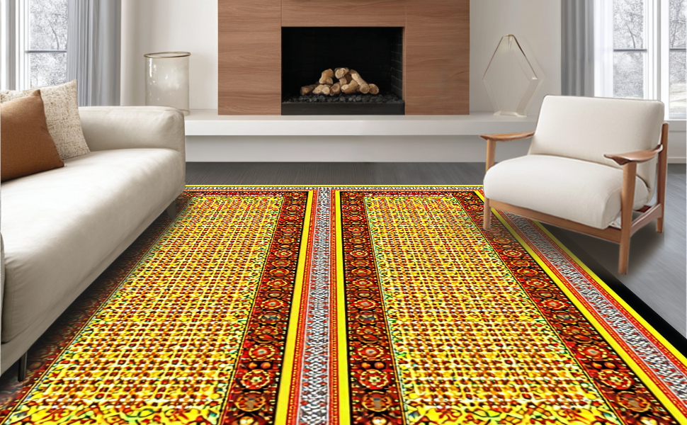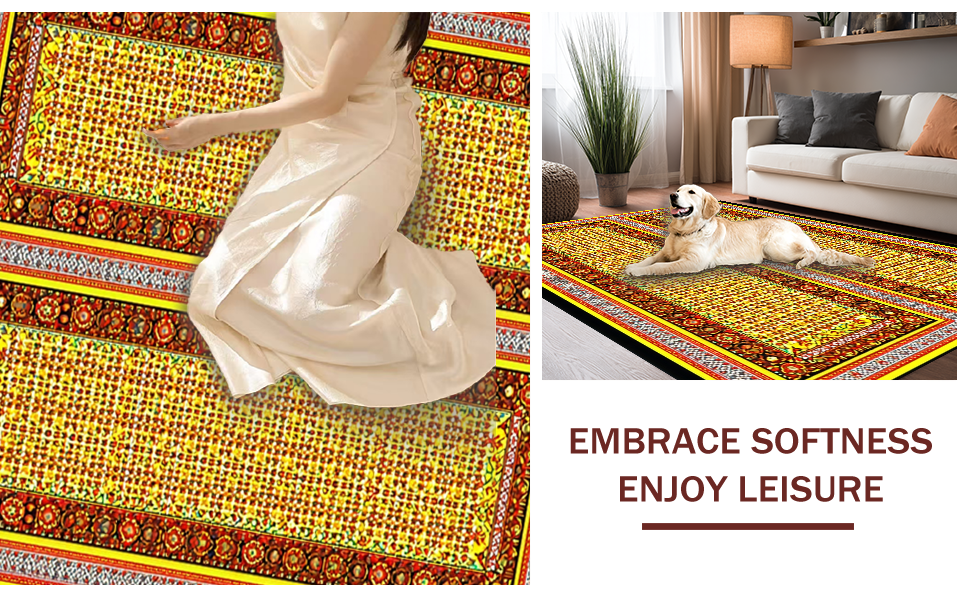 Ultra Soft Area Rug, Non Slip, Stain Resistant, Washable Area Rugs for Living Room, Bedroom, Festive Colorful Egg Motif(Gold) Overview: