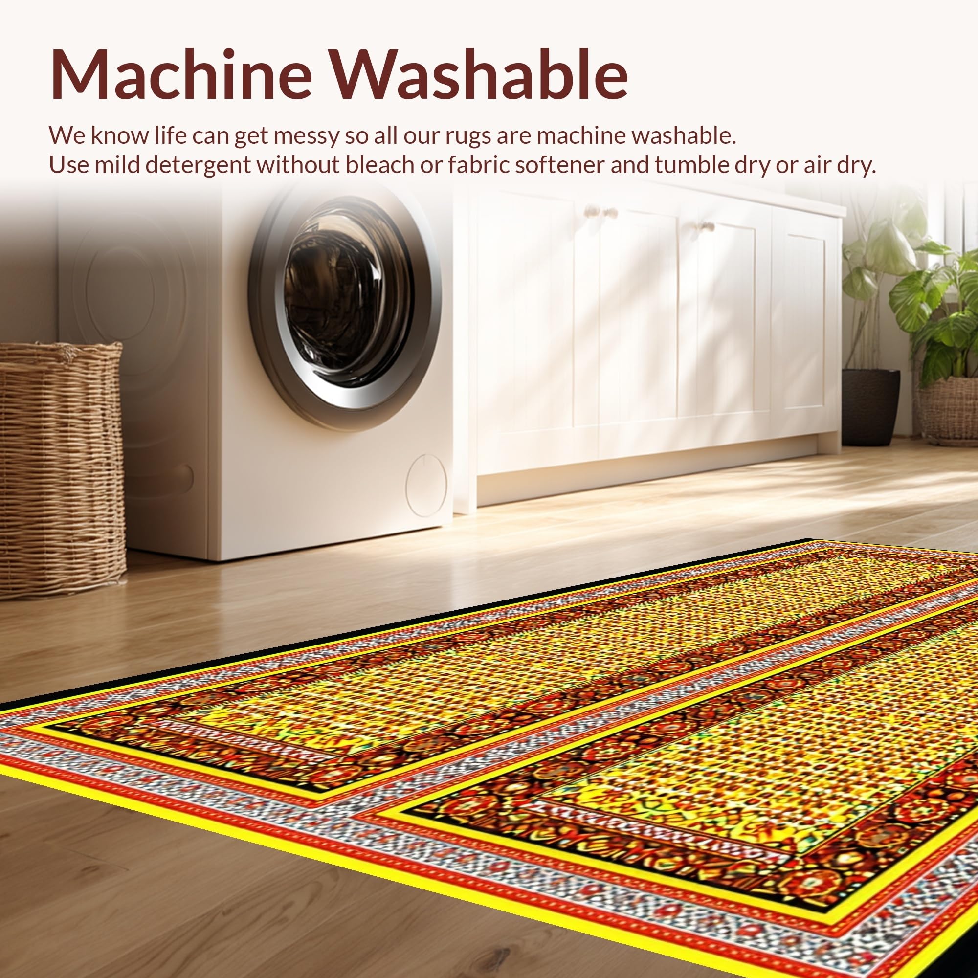 - Machine Washable: Our rugs can be easily thrown in the wash machine.