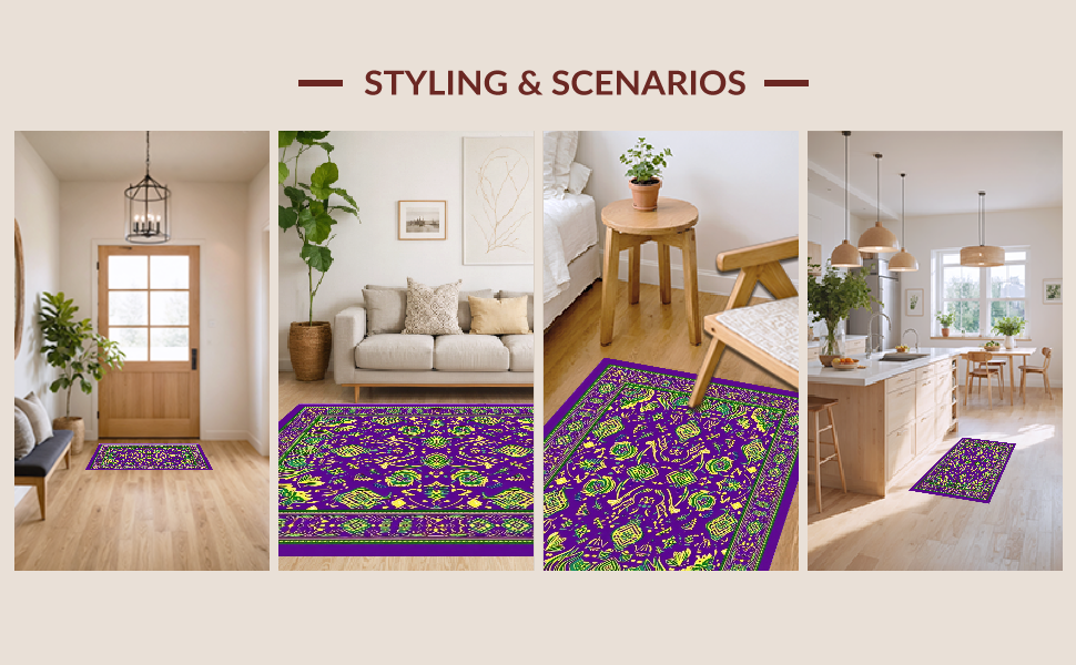 Ultra Soft Area Rug, Non Slip, Stain Resistant, Washable Area Rugs for Living Room, Bedroom, Festive Elegant Lattice Design(Purple) Overview: