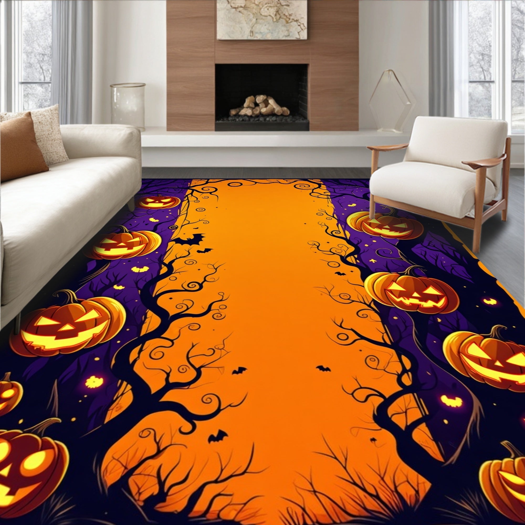 Flatwoven High Traffic Area Rug, Festive Halloween Welcome Doormat with Spooky Pumpkin, Non Slip, Stain Resistant, Washable Area Rugs for Living Room, Bedroom (Orange) Overview: