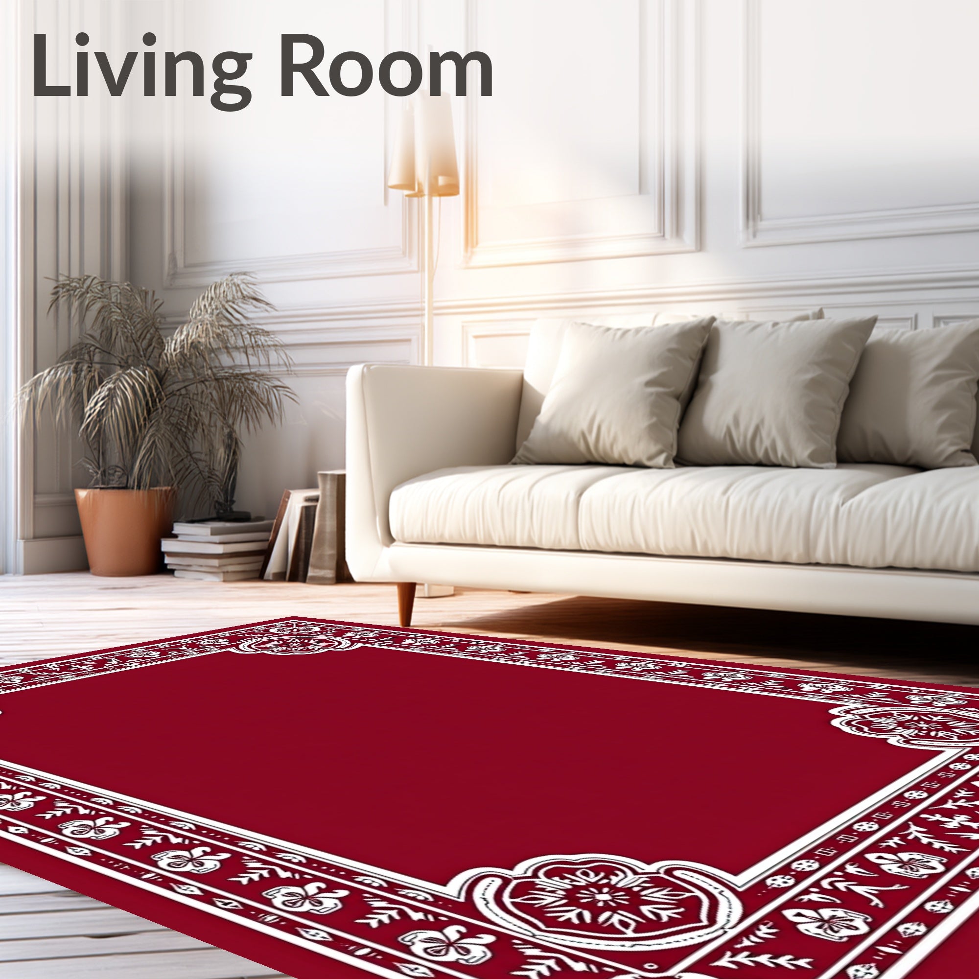 Ultra Soft Area Rug, Non Slip, Stain Resistant, Washable Area Rugs for Living Room, Bedroom, Festive Holiday Motif With Backing(Red) Overview: