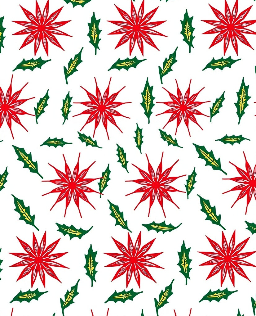 Festive Interlocking Starburst and Holly Leaf Patterned Art(Red)