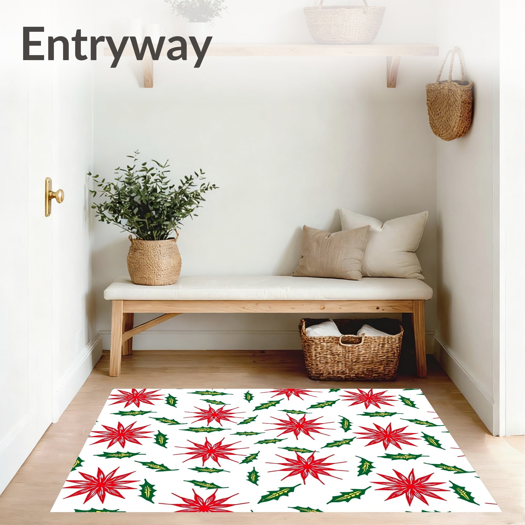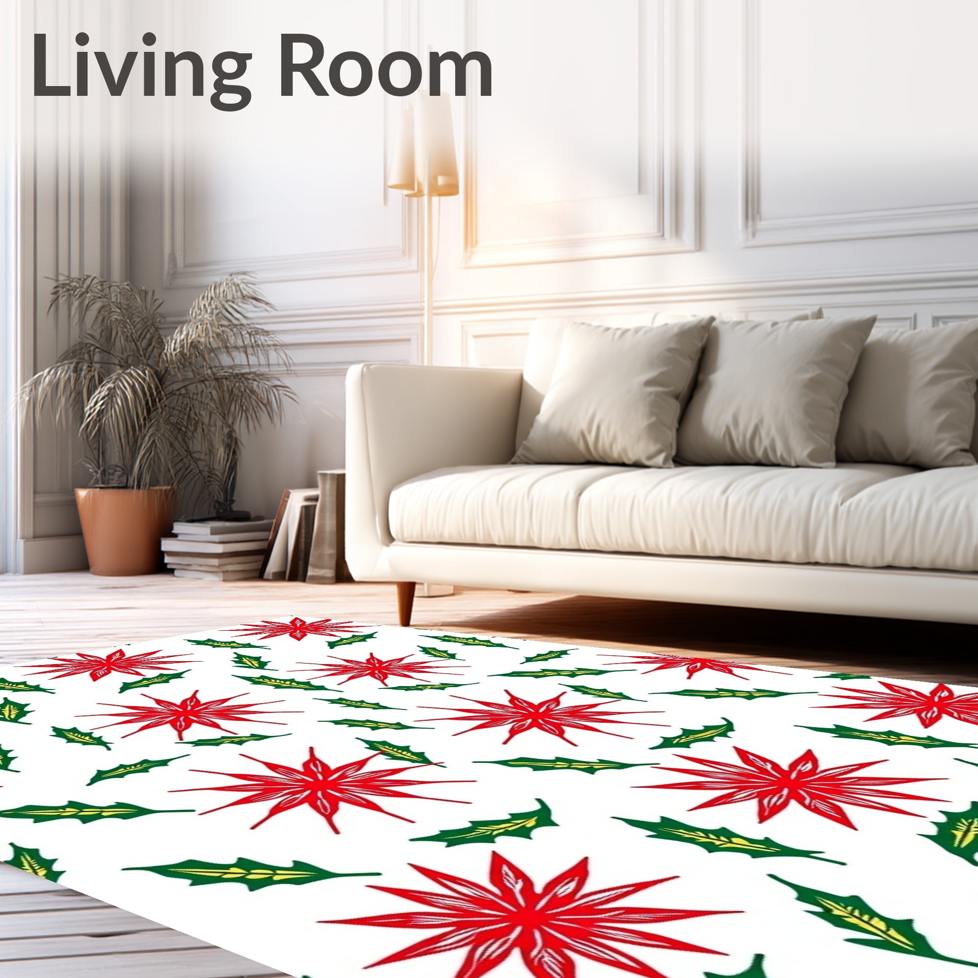Ultra Soft Area Rug, Non Slip, Stain Resistant, Washable Area Rugs for Living Room, Bedroom, Festive Interlocking Starburst and Holly Leaf Patterned Art(Red) Overview: