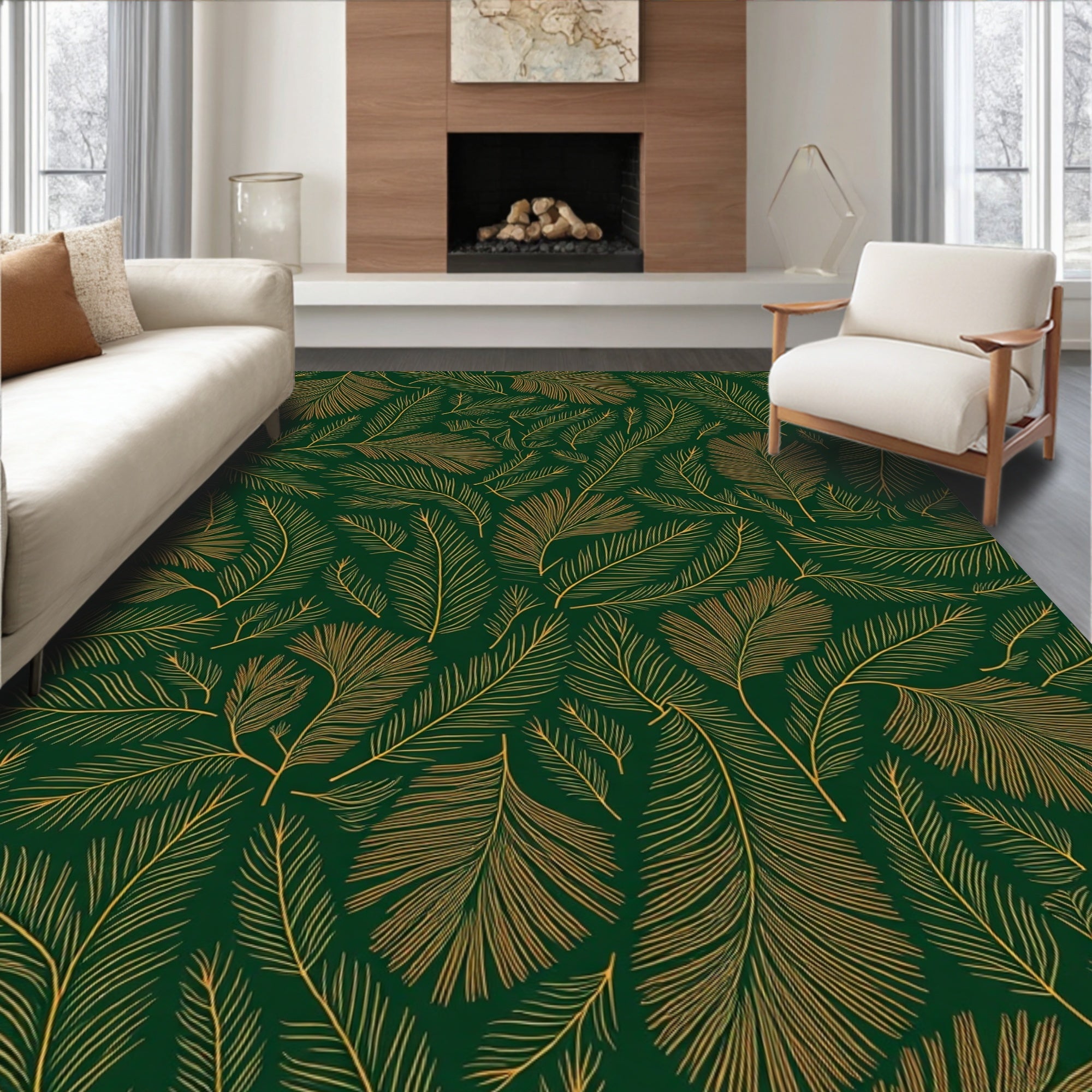 Ultra Soft Area Rug, Non Slip, Stain Resistant, Washable Area Rugs for Living Room, Bedroom, Festive Pine Needle Spiral with Holiday Botanical Design(Green) Overview: